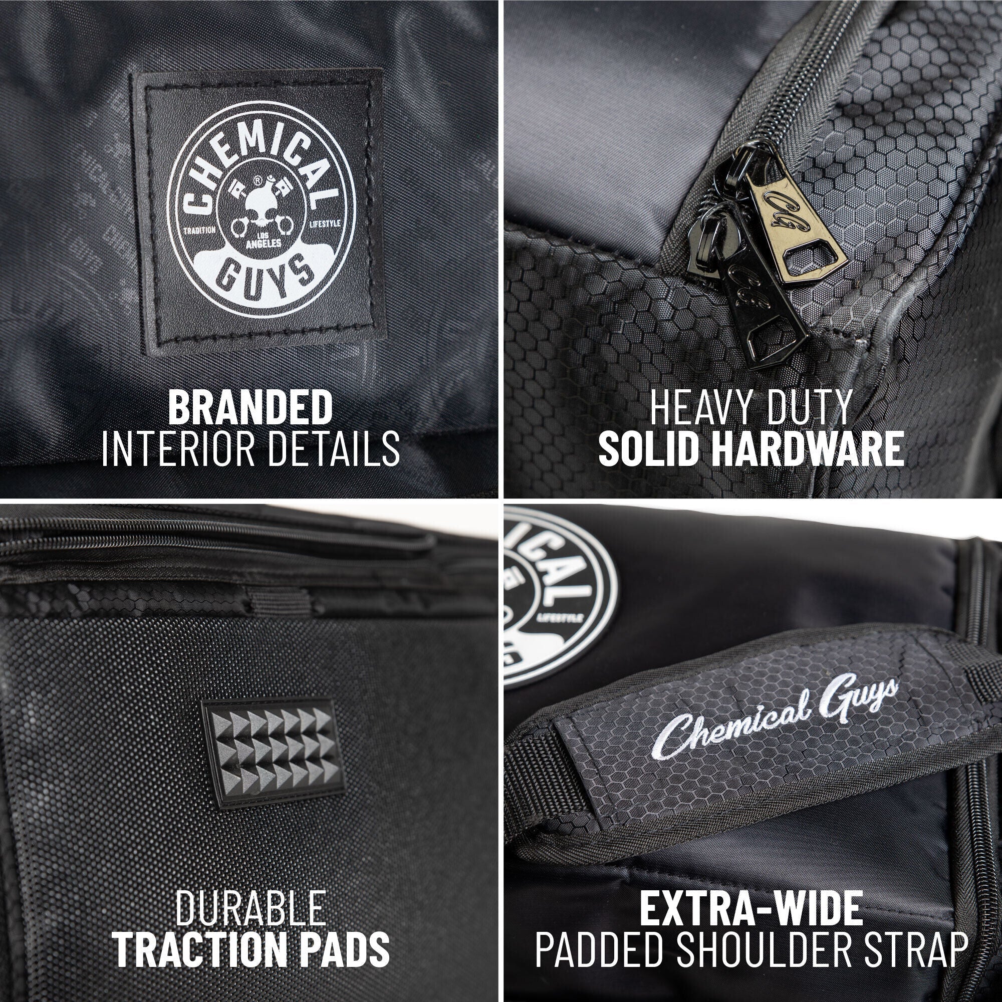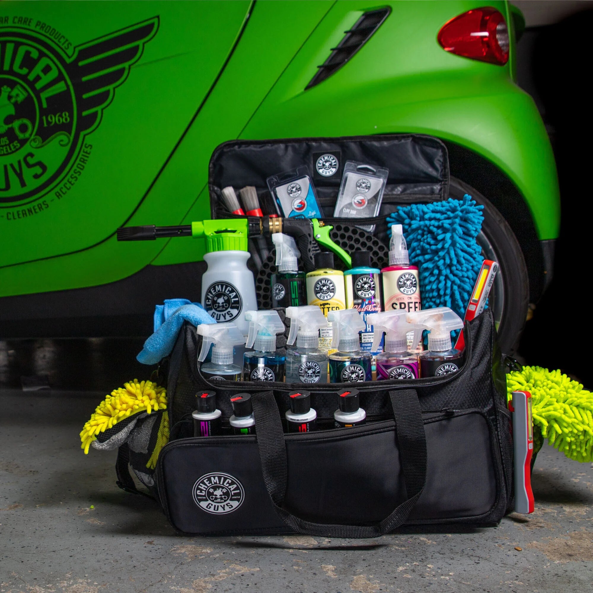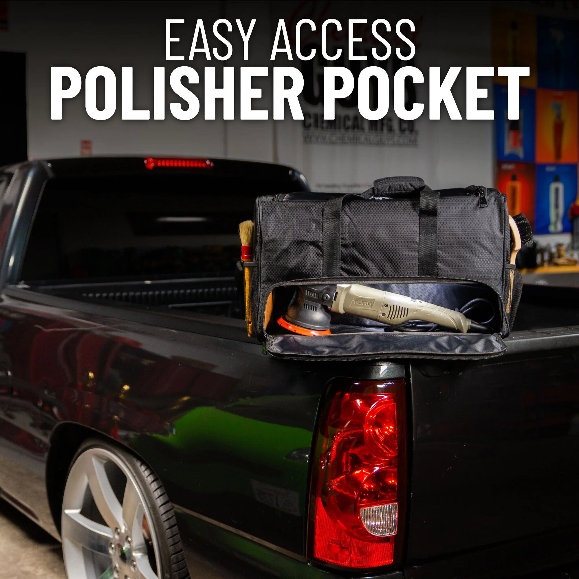 The Arsenal Range Trunk Organizer and Detailing Bag is a huge 21" x 12" x 14" bag that fits your polisher, chemicals, accessories, clothing, shoes, and more, so you're always ready for your next adventure.