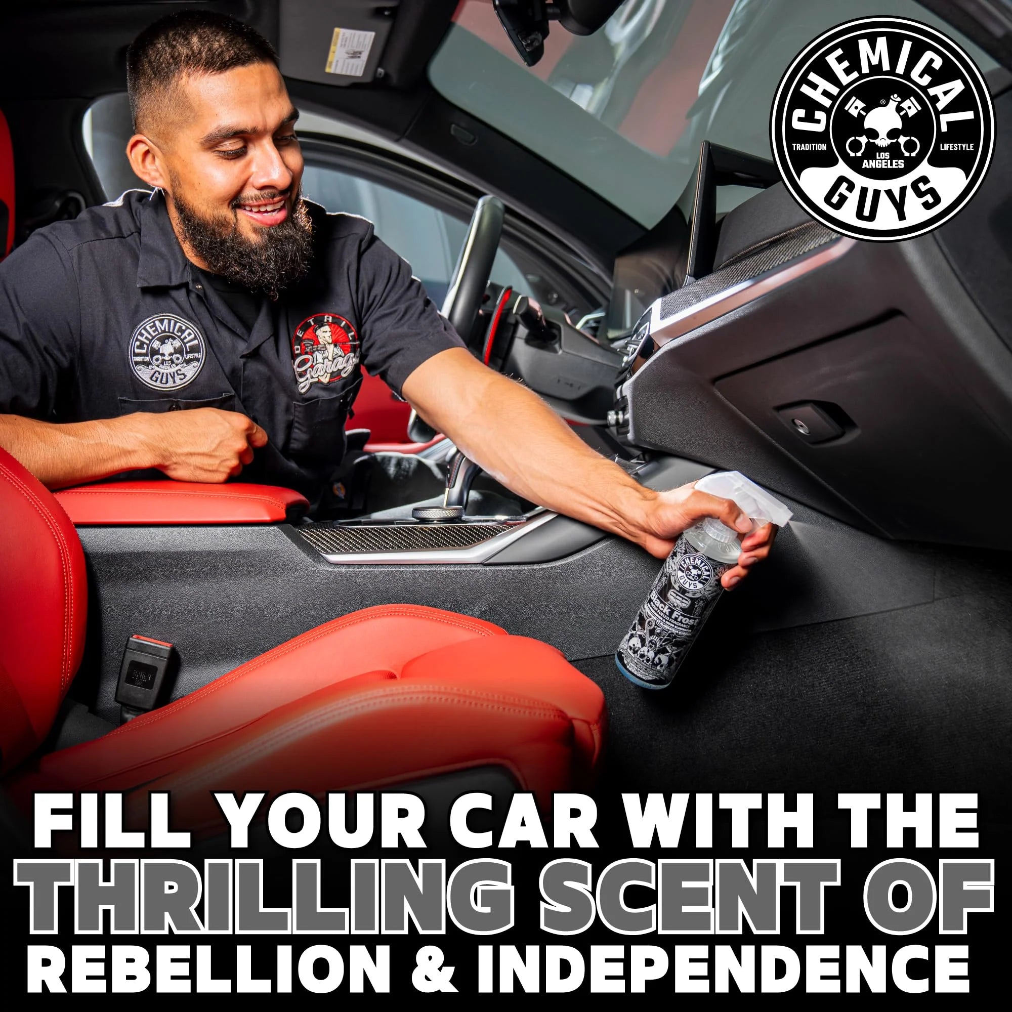 Freshen the air and purge old musty smells from automobile interiors and other enclosed spaces with just a spritz of your favorite Chemical Guys air freshener scents. Upgrade your air freshener game, and pick up one for him and one for her with the Chemical Guys Black Frost & Signature Scent Combo Pack.
