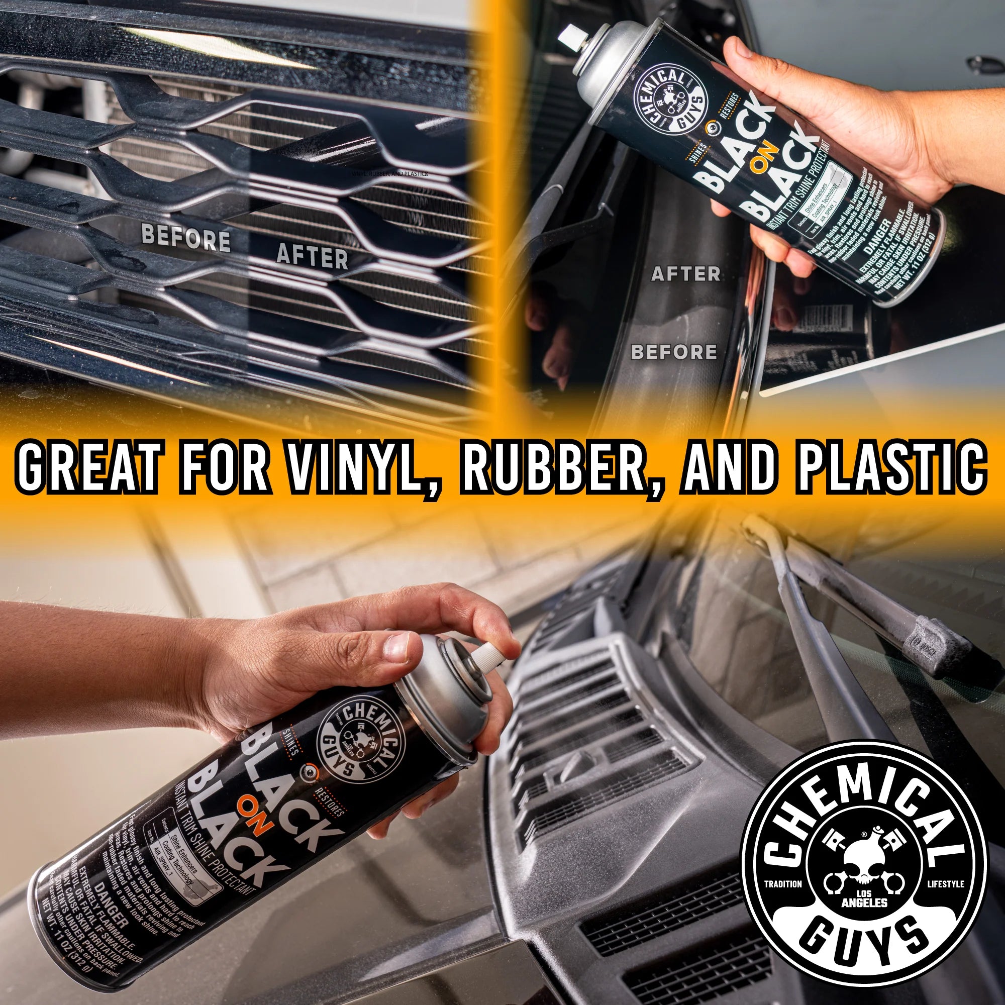 Black on Black is an instant dressing that uses an ultra-fine atomizer to spray thin coats into hard-to-reach trim parts. It easily restores a rich, black, like-new look to your trim.