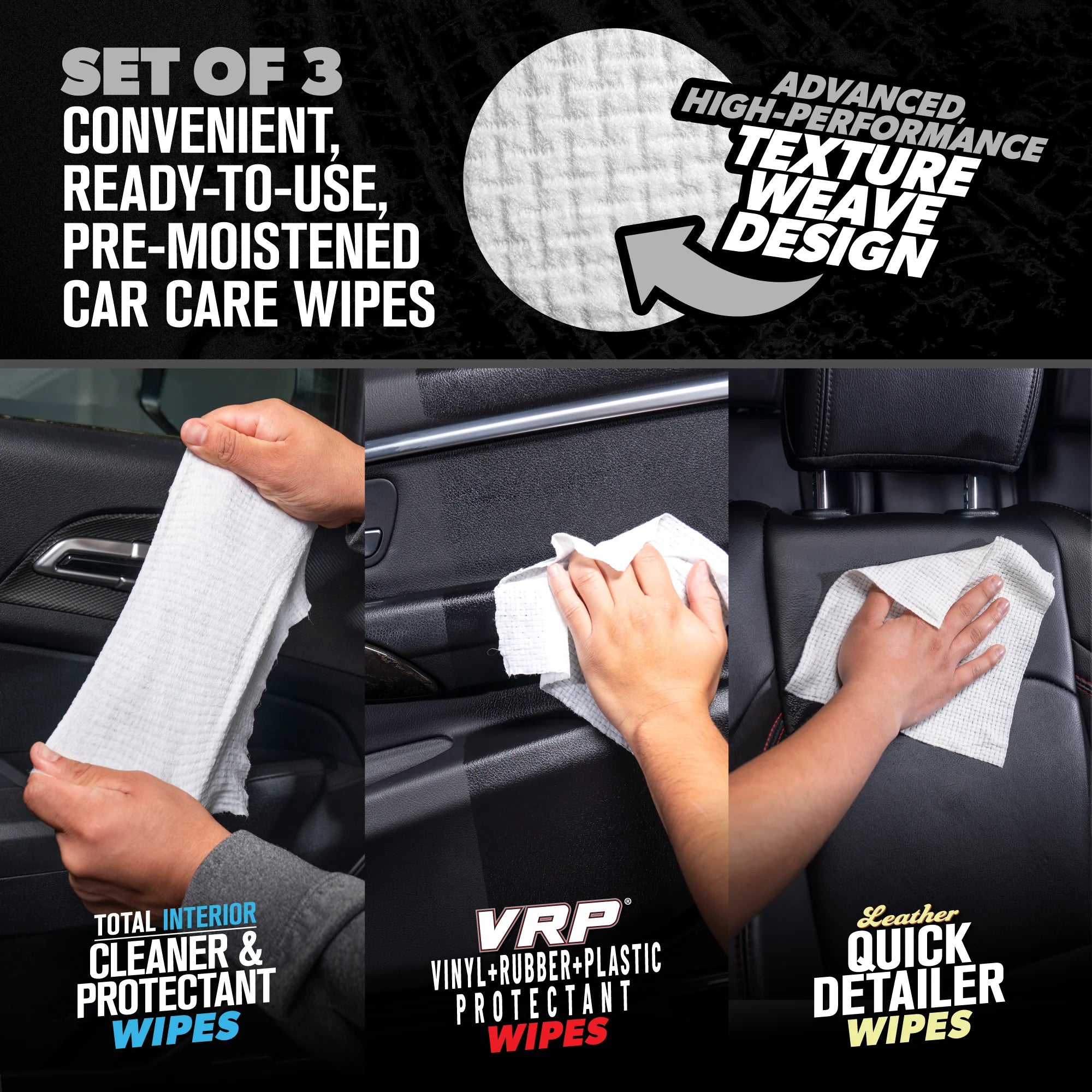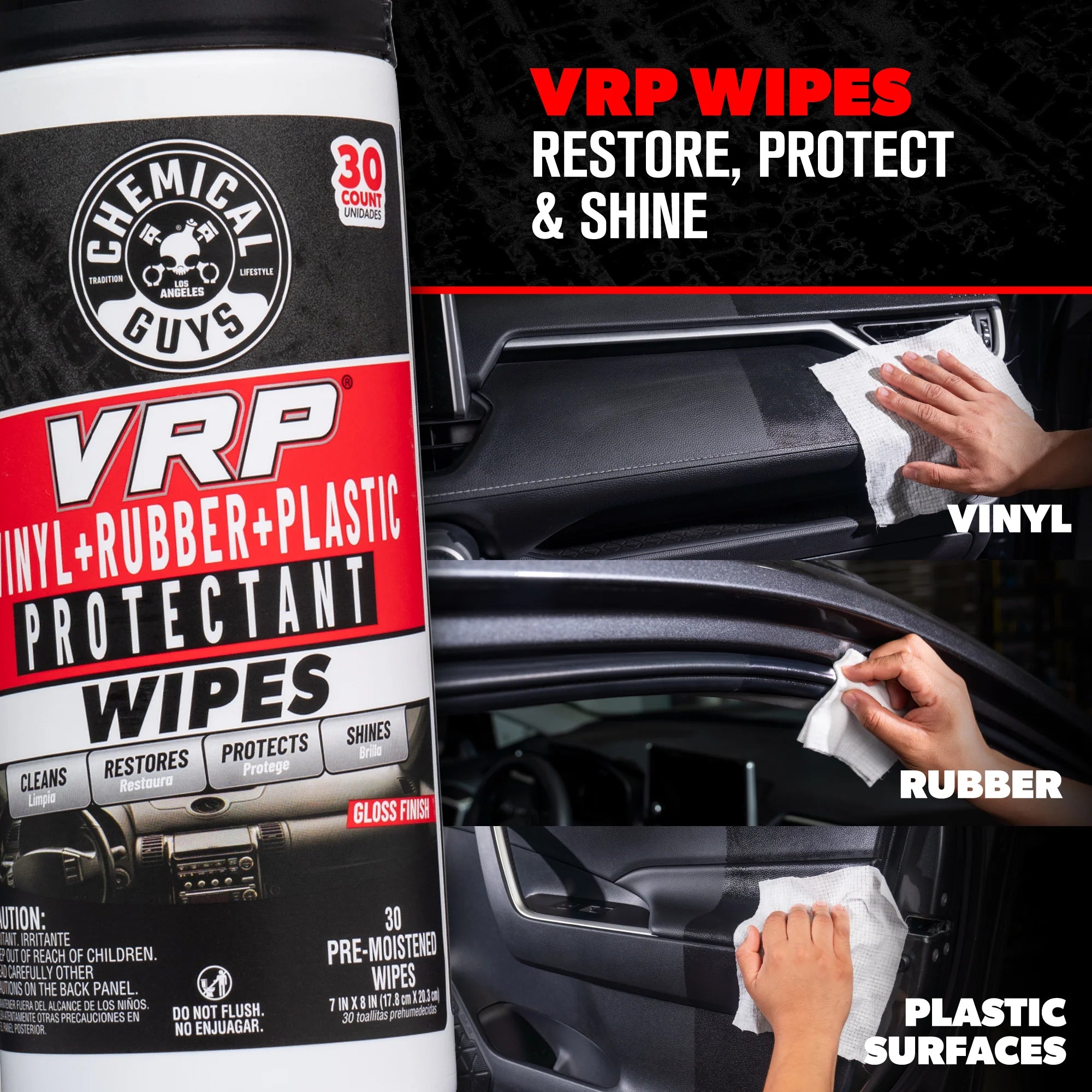 Then, use the VRP Wipes on all your vinyl, rubber, and plastic surfaces. Apply evenly to clean, restore, and protect those areas, focusing on spots prone to cracking and fading, such as rubber floor mats, weather stripping, and trim pieces. Use gentle, even strokes to ensure full coverage. Let the product absorb and dry, leaving behind a layer of restorative protection.