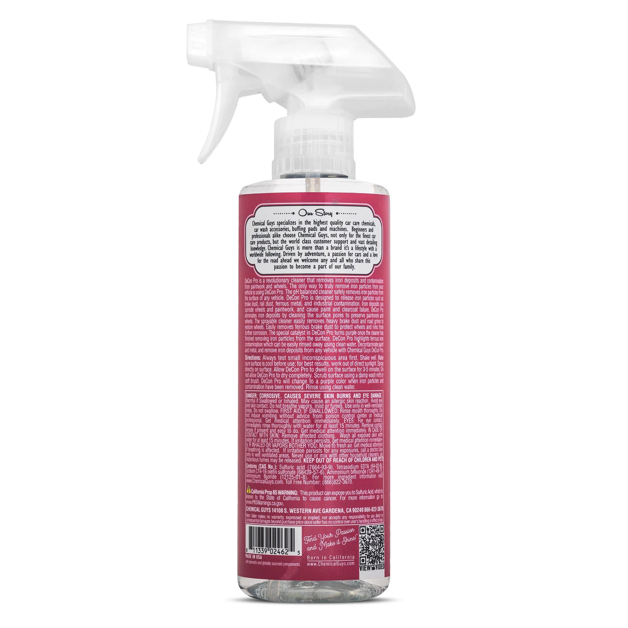 Unleash the power of Decon Pro Iron Remover, a heavy-duty color-changing cleaner that helps remove brake dust, iron deposits, and embedded metallic contamination.