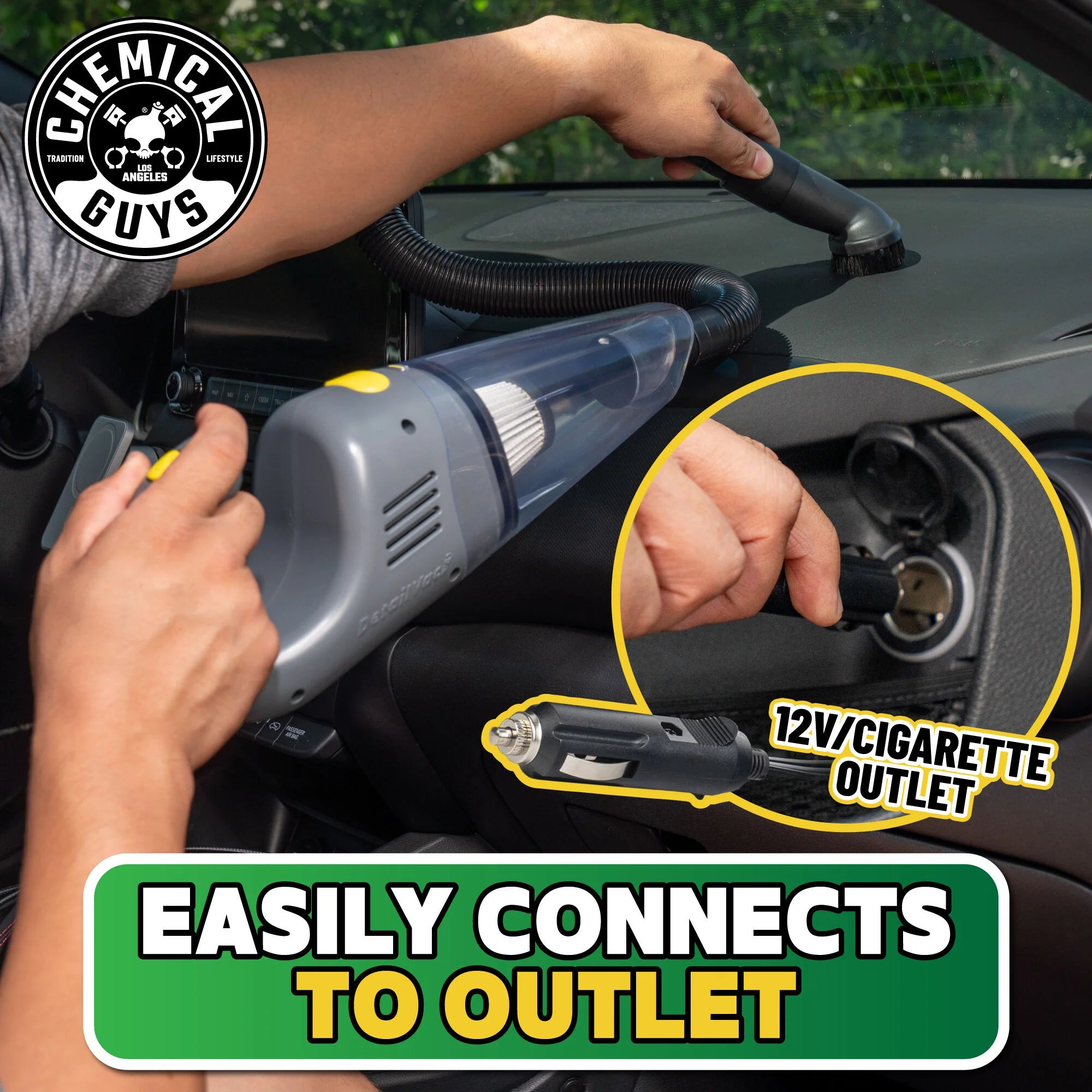 The DetailVac is the powerful, portable handheld vacuum cleaner from Chemical Guys. With a 16-foot cord, you can clean all the hard-to-reach spots in your car or truck without the hassle of a large vacuum or the need for quarters at the gas station.
