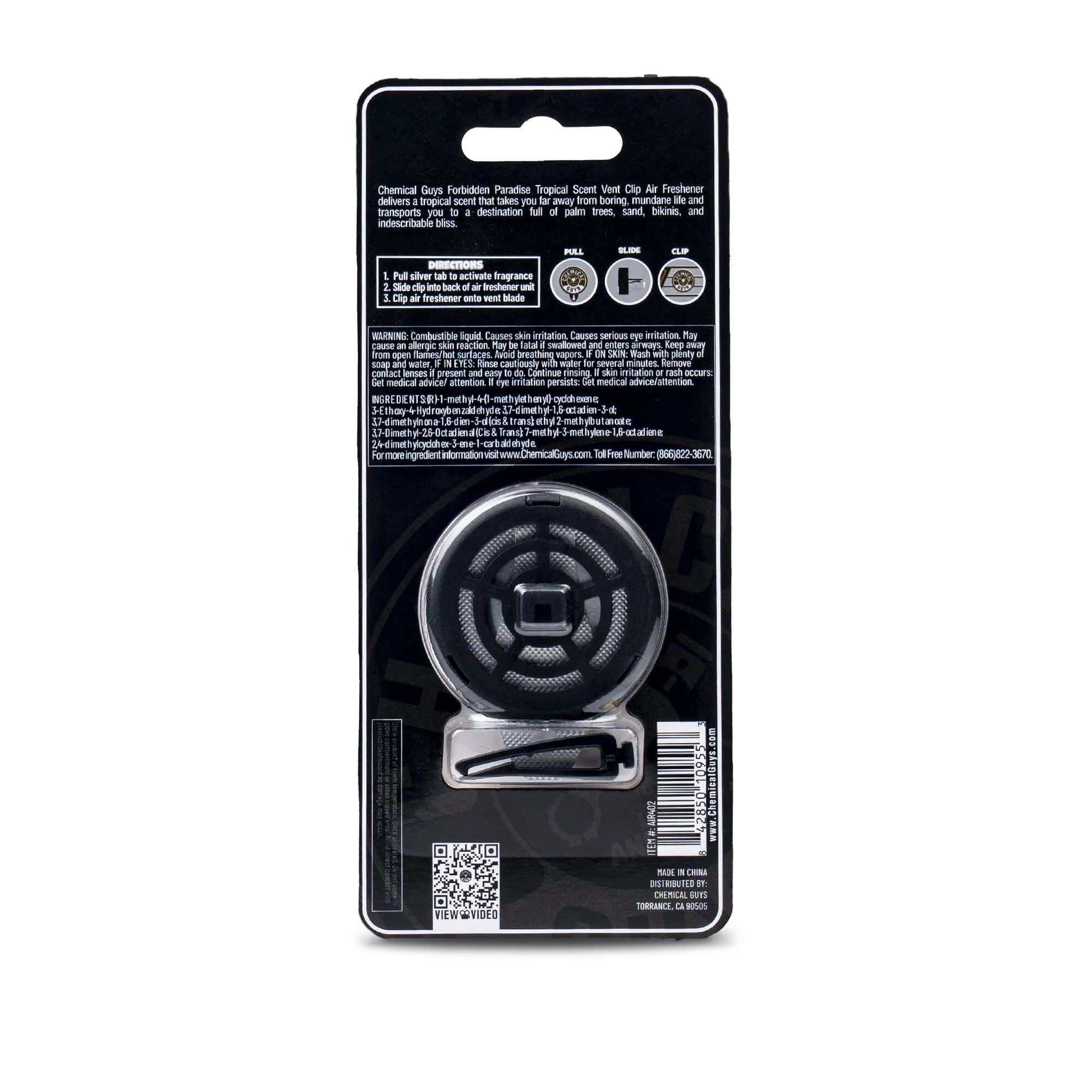 Escape the ordinary and dive into paradise with the Chemical Guys Forbidden Paradise Tropical Scent Vent Clip! This little clip packs a punch, transforming your ride into a dreamy getaway filled with the exotic aroma of palm trees, sandy beaches, and endless bliss. It's the ultimate ticket to a permanent vacation for your senses!