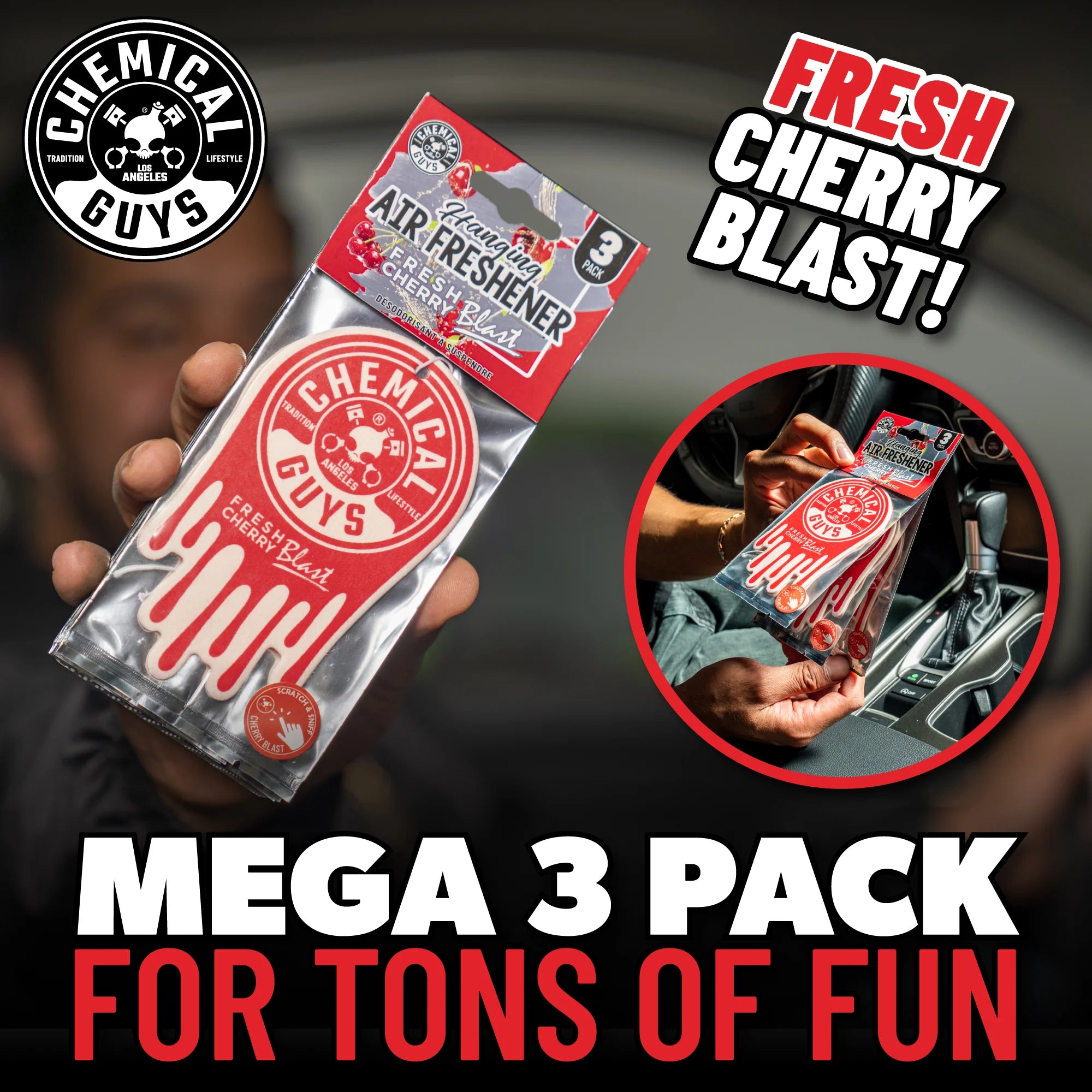 Turn every drive into a delightful journey with our Fresh Cherry Blast Hanging Air Freshener 3-Pack. Embrace the sweet and tangy aroma of ripe cherries that instantly refresh your car interior. Whether commuting to work or embarking on a road trip, let the deep and indulgent scent uplift your mood and create a pleasant driving atmosphere.