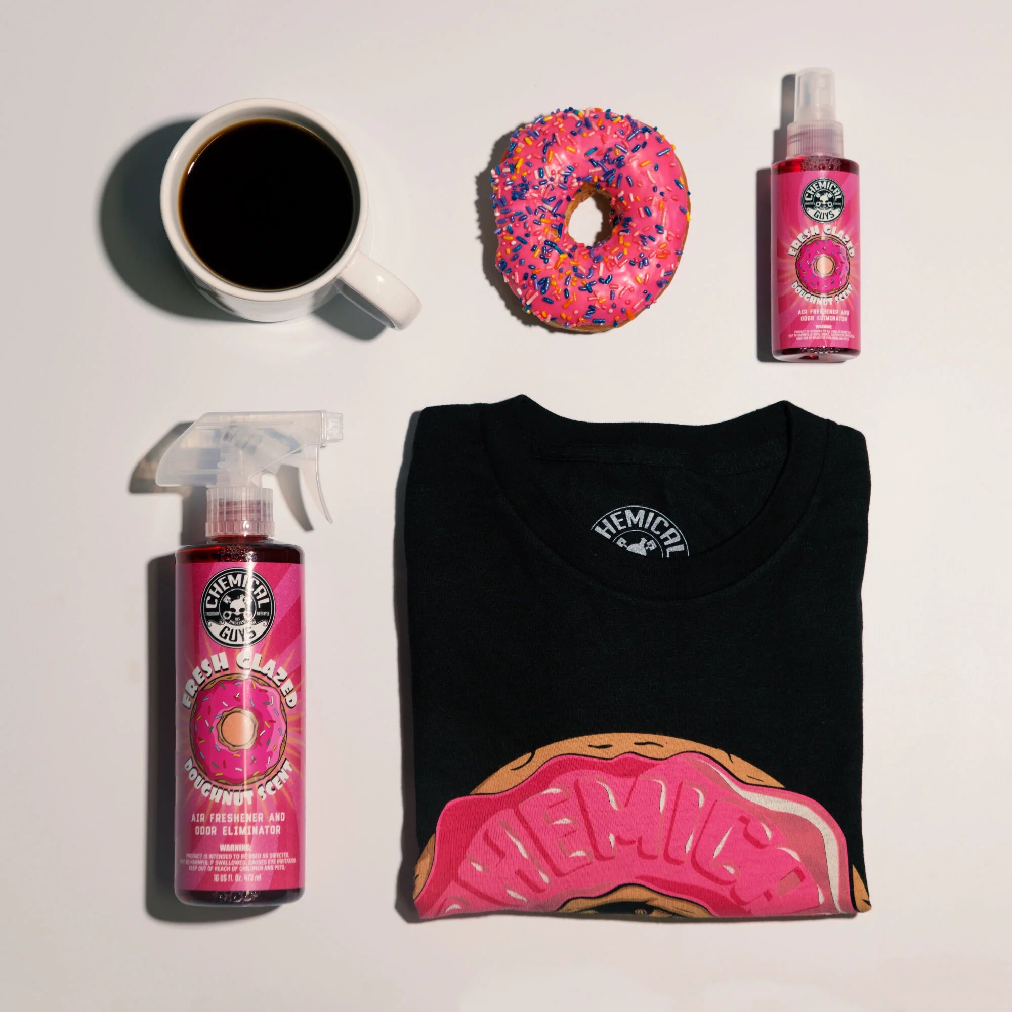 The Fresh Glazed Doughnut T-Shirt celebrates your favorite sugary food, the company that makes your ride shine, and the detailing lifestyle in an irresistibly fun style.