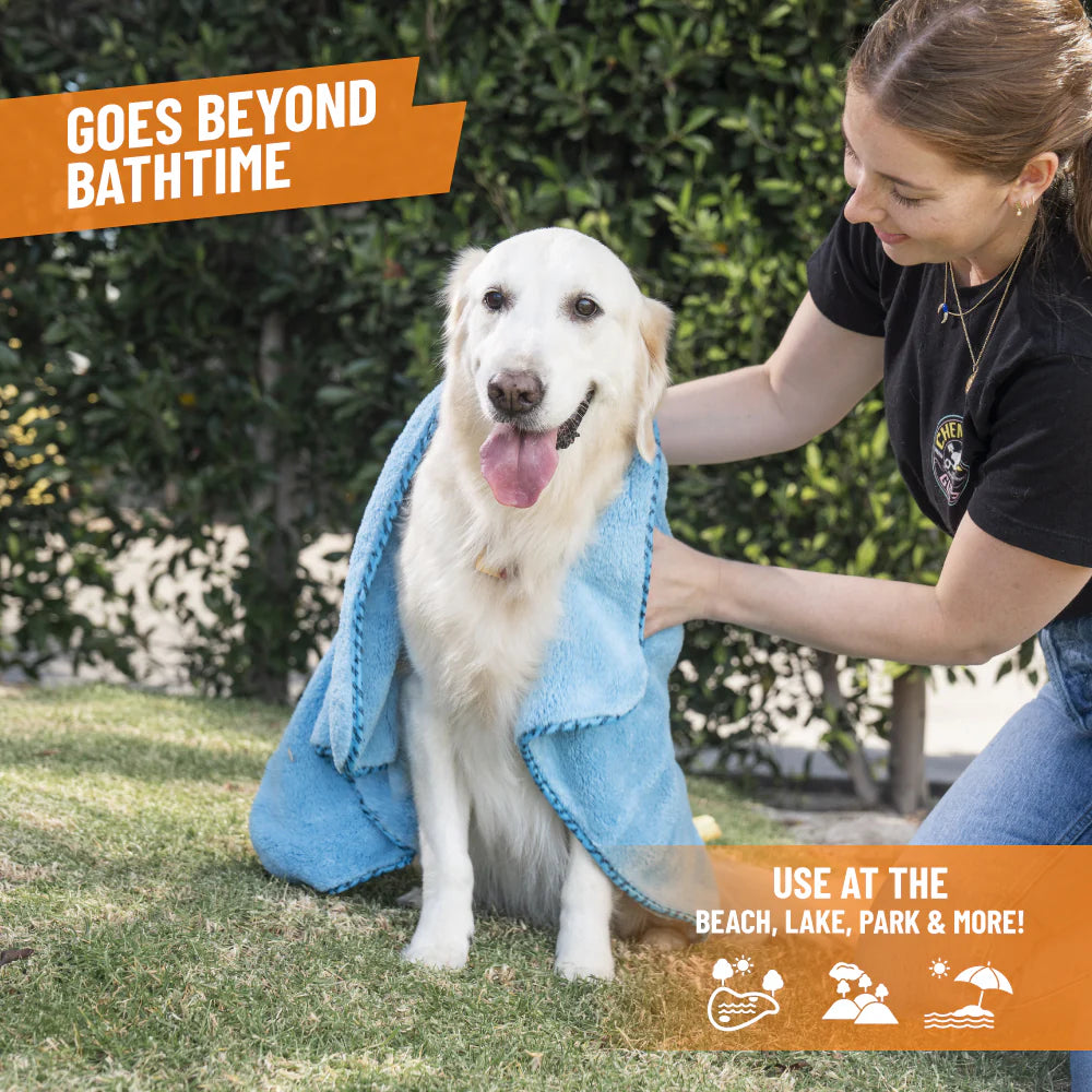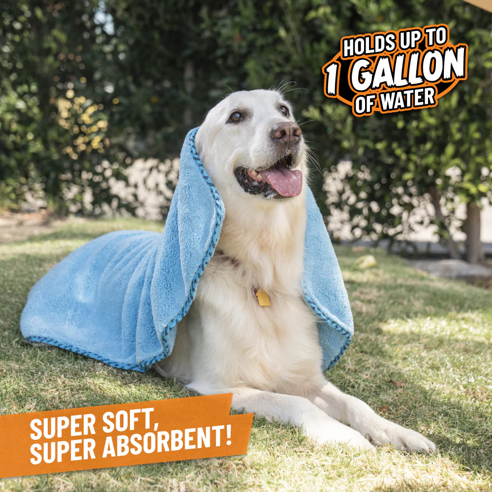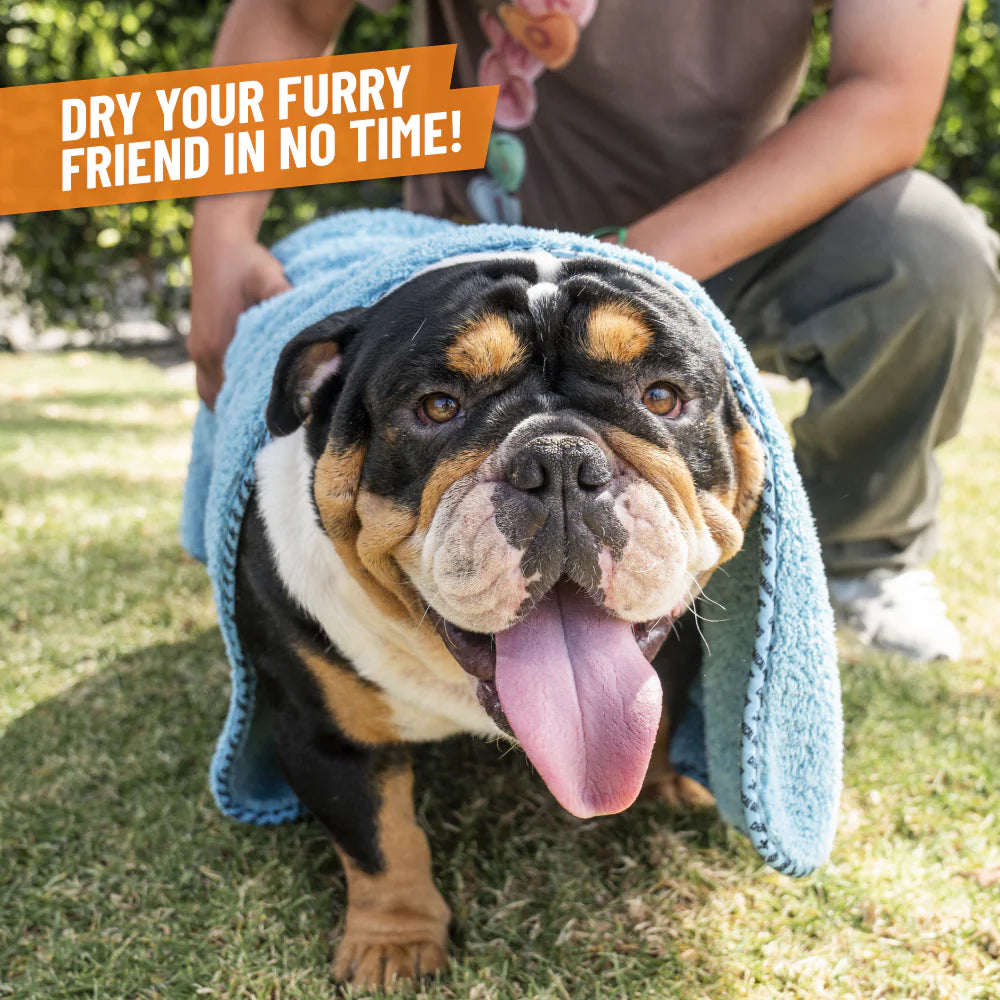 Furrocious is an ultra-plush, super absorbent microfiber pet drying towel that dries your four-legged friend in no time with its large 25" x 36" size that makes it easy to get every inch of them dry as a bone.