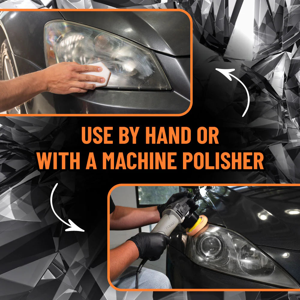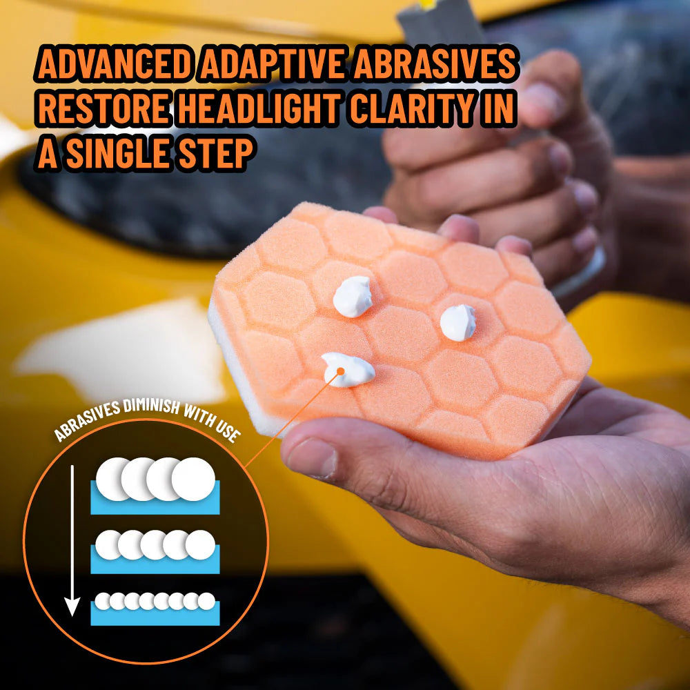 Restore yellowed, hazy headlights and other plastic lenses quickly with Chemical Guys Headlight Restorer IQ. Its adaptive abrasive technology cuts through oxidation and polishes as you work, to deliver a clear, polished finish. Use by hand or machine for fast, easy results.