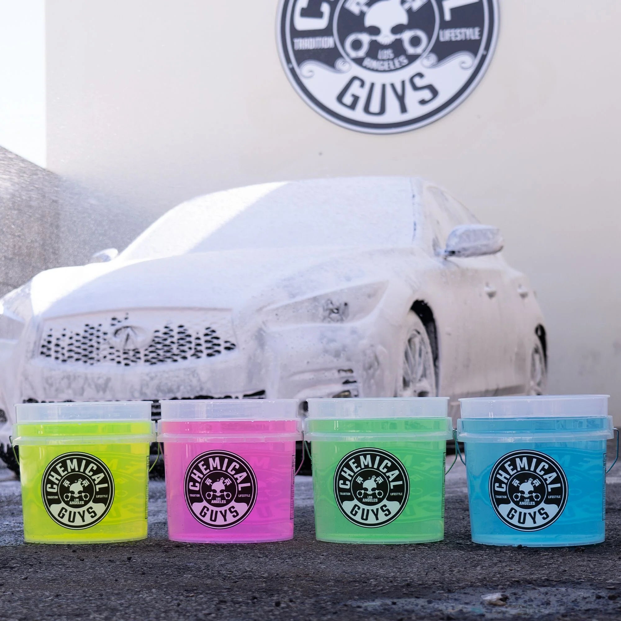 This Heavy-Duty Clear Bucket holds over 4 gallons and makes car washing, storage, and detailing easier. Combines with the Cyclone Dirt Trap insert and the Bucket Lid, which converts the bucket to a handy seat.