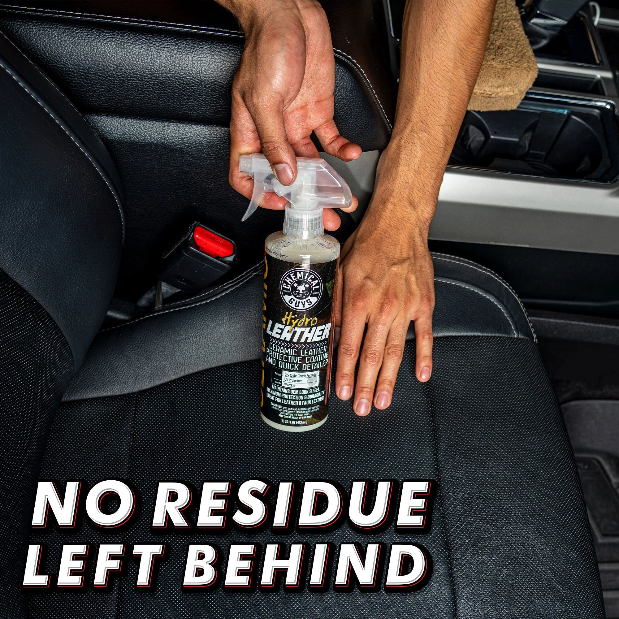 HydroLeather puts a durable, protective ceramic barrier on leather surfaces, which helps resist dirt, UV rays, and discoloration. Keep your leather looking and feeling brand new for longer without leaving behind any residue.