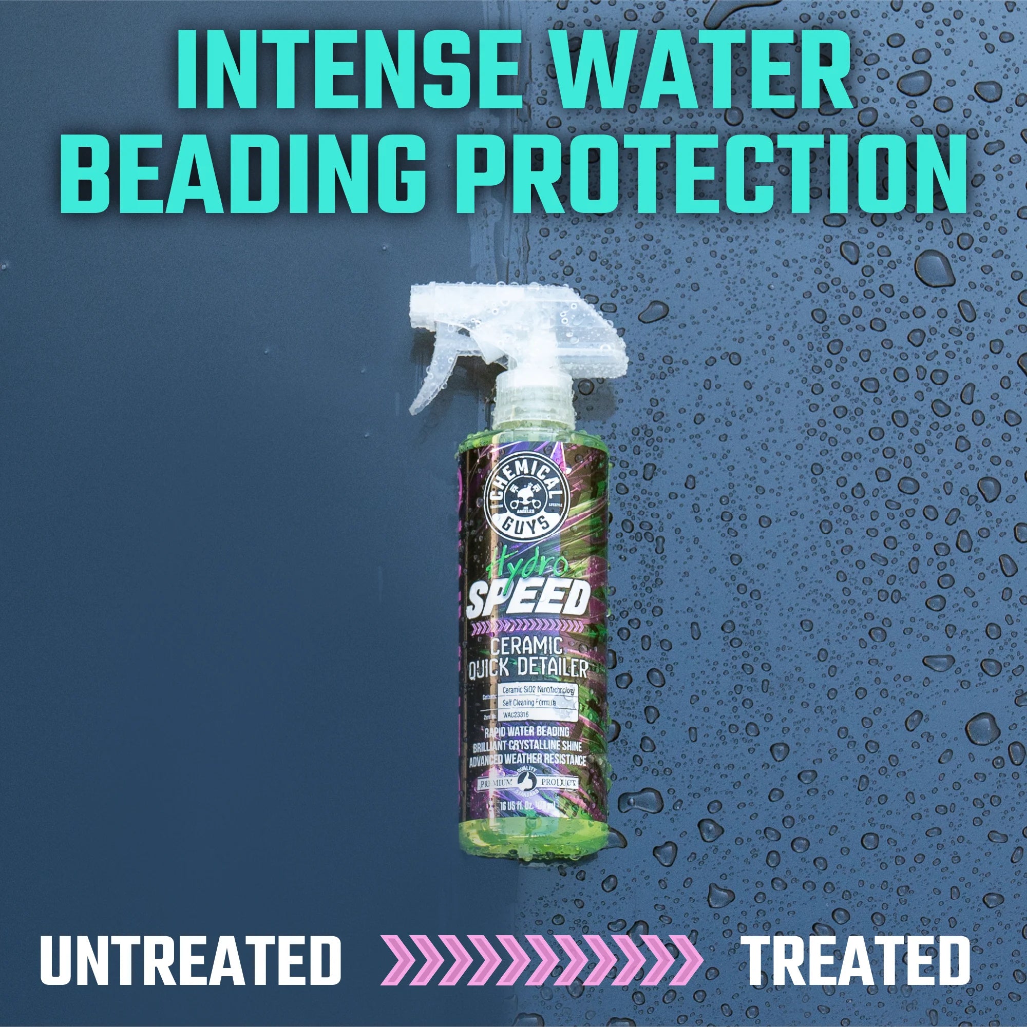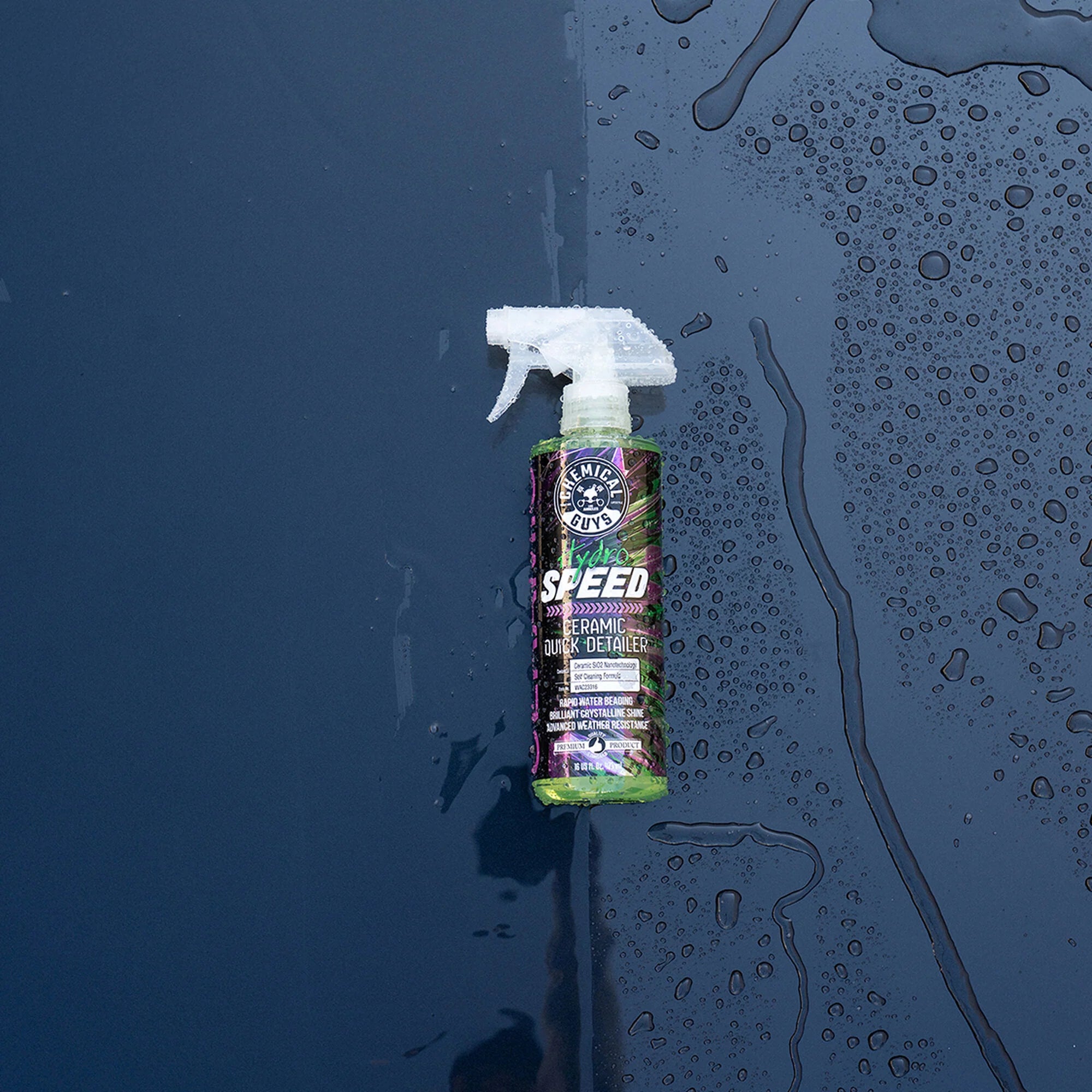 Introducing HydroSpeed: the ultimate car spray infused with hydrophobic polymers and SiO2 nanoparticles. Easy to apply, it delivers a stunning shiny finish, shields your vehicle against all weather conditions, and promotes rapid water beading.