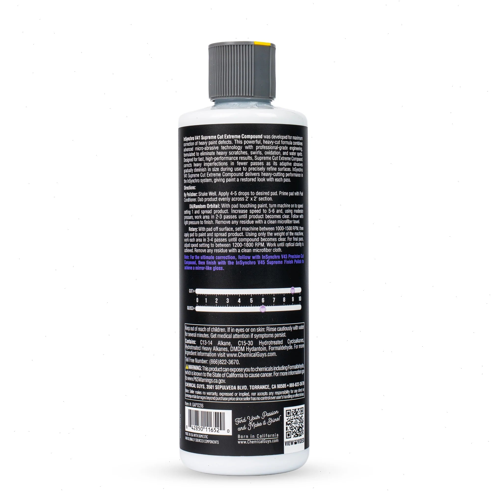 InSynchro V41 Supreme Cut Extreme Compound is engineered for serious paint correction. Its advanced adaptive abrasives quickly remove heavy scratches, swirls, oxidation, and water spots, leaving paintwork with a smooth, uniform finish.Â