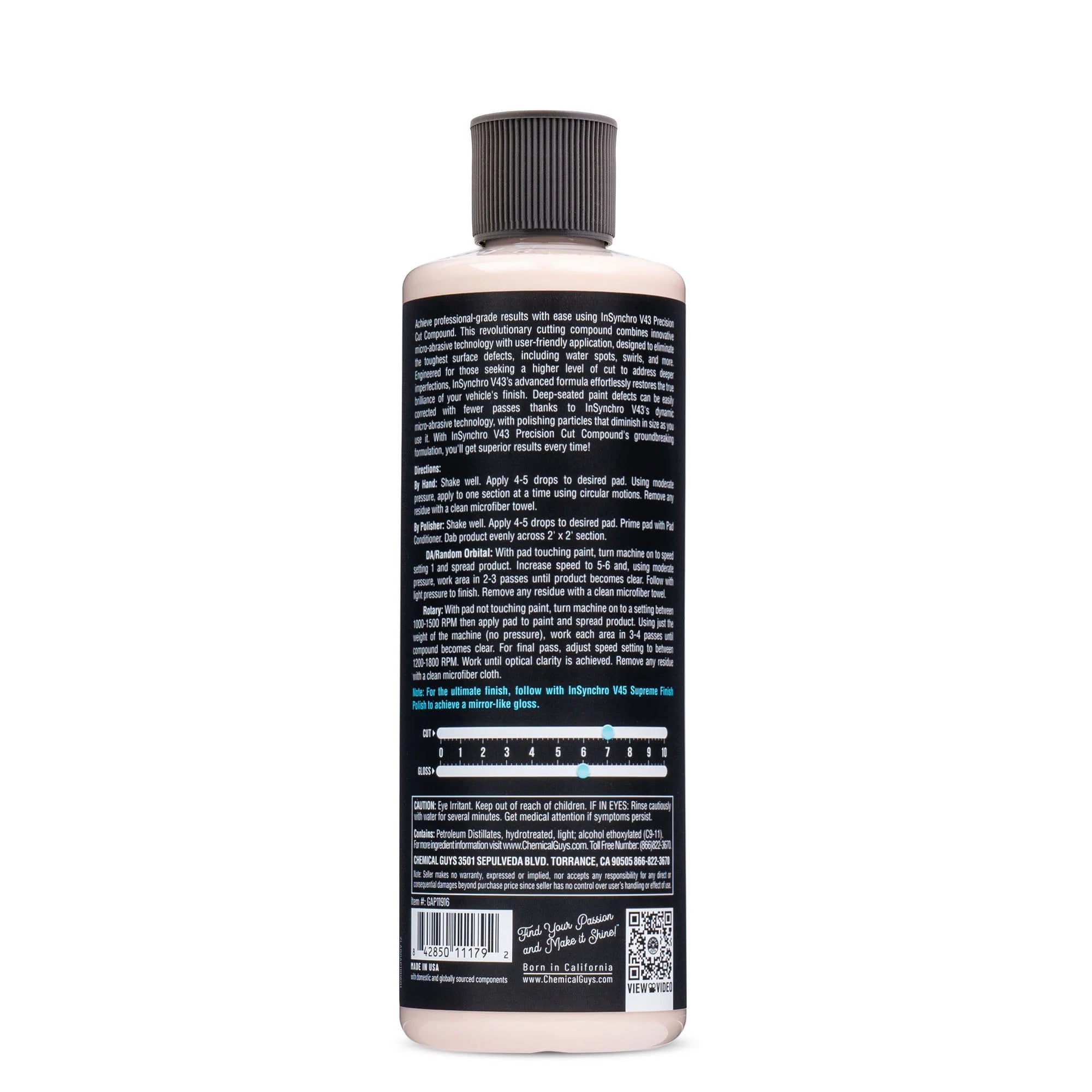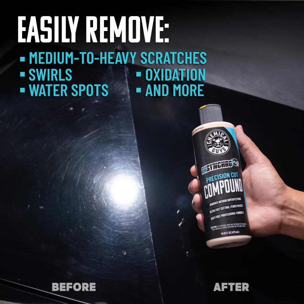 InSynchro V43 is your go-to solution for swiftly eliminating scratches, swirls, oxidation, water spots, and minor paint imperfections—all without creating a cloud of dust. Thanks to its ultra-refined adaptive abrasives, this polish reduces in size during application, allowing for effective corrections in fewer passes. Protect your vehicle's surfaces while saving precious time and achieving a flawless finish.