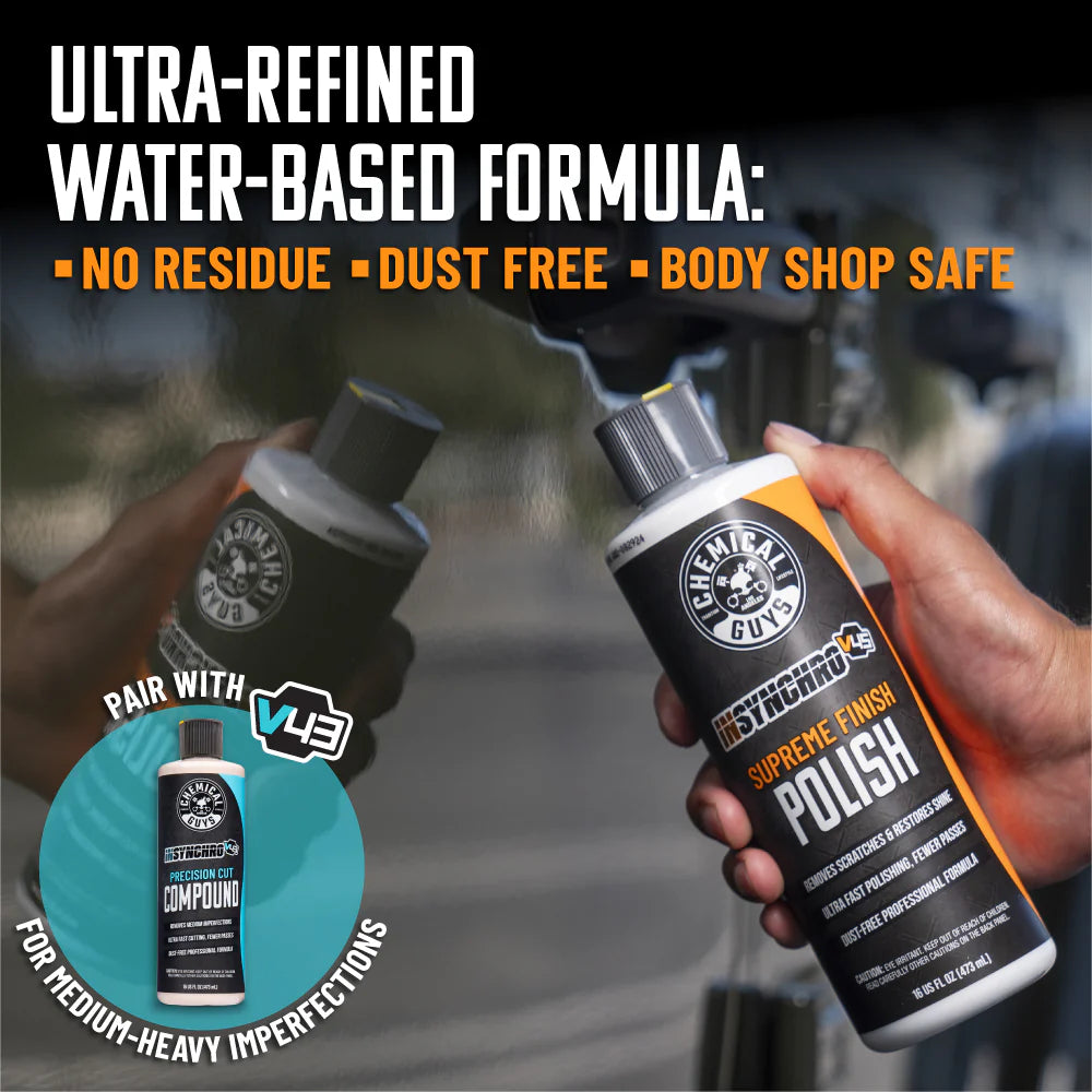 InSynchro V45 is a game-changing precision finishing polish designed for removing light scratches and swirls with ease. Featuring innovative adaptive micro-abrasives, these polishing particles shrink in size during application, enabling effective corrections in fewer passes while remaining gentle on your paintwork. Achieve a flawless, mirror-smooth finish that saves time and protects surface integrity—perfect for detailers who demand the best.