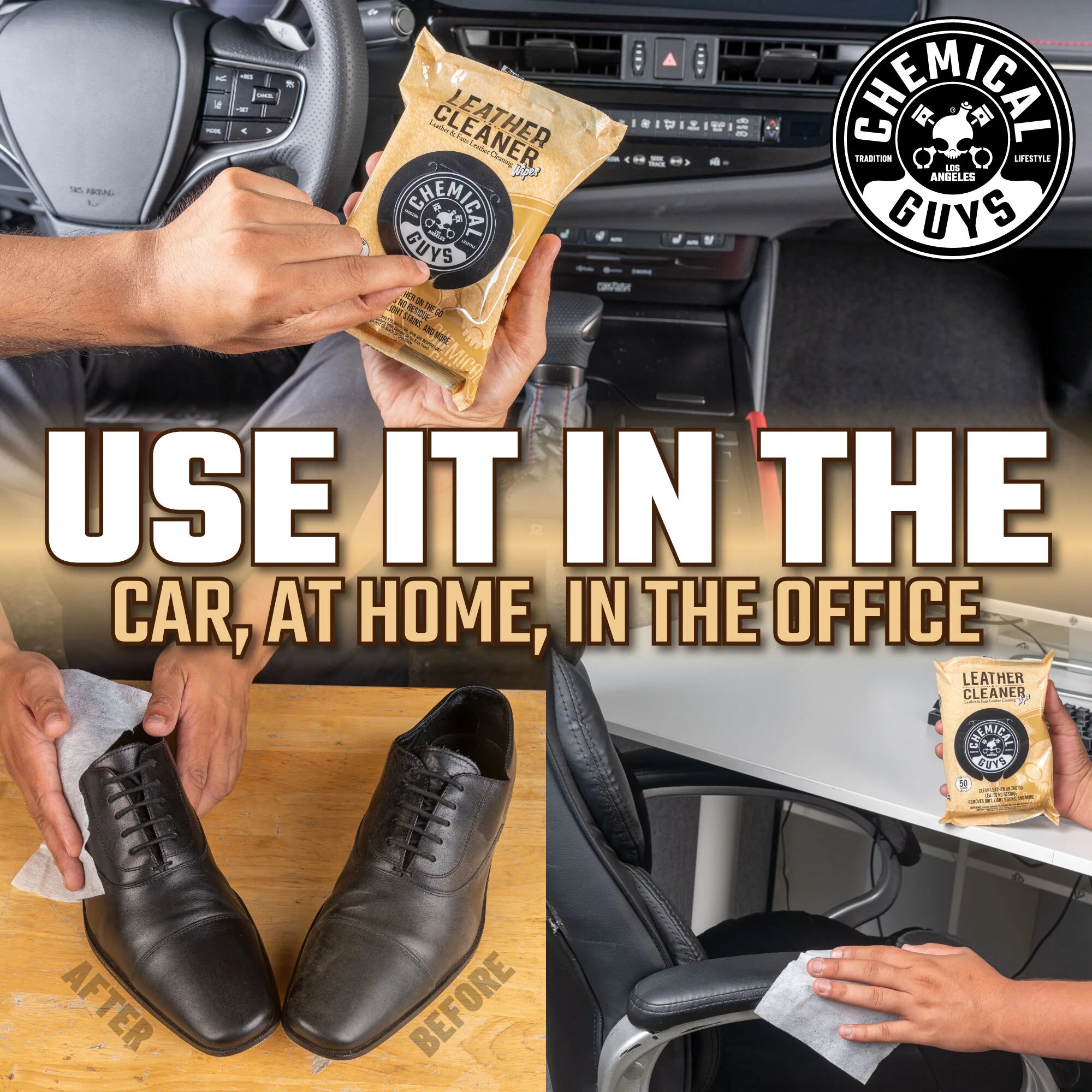 Leather Cleaner Wipes are easy-to-use wipes that quickly remove dirt, grease, body oils, and sweat from all types of leather, then maintain the like-new look and feel of your leather surfaces.