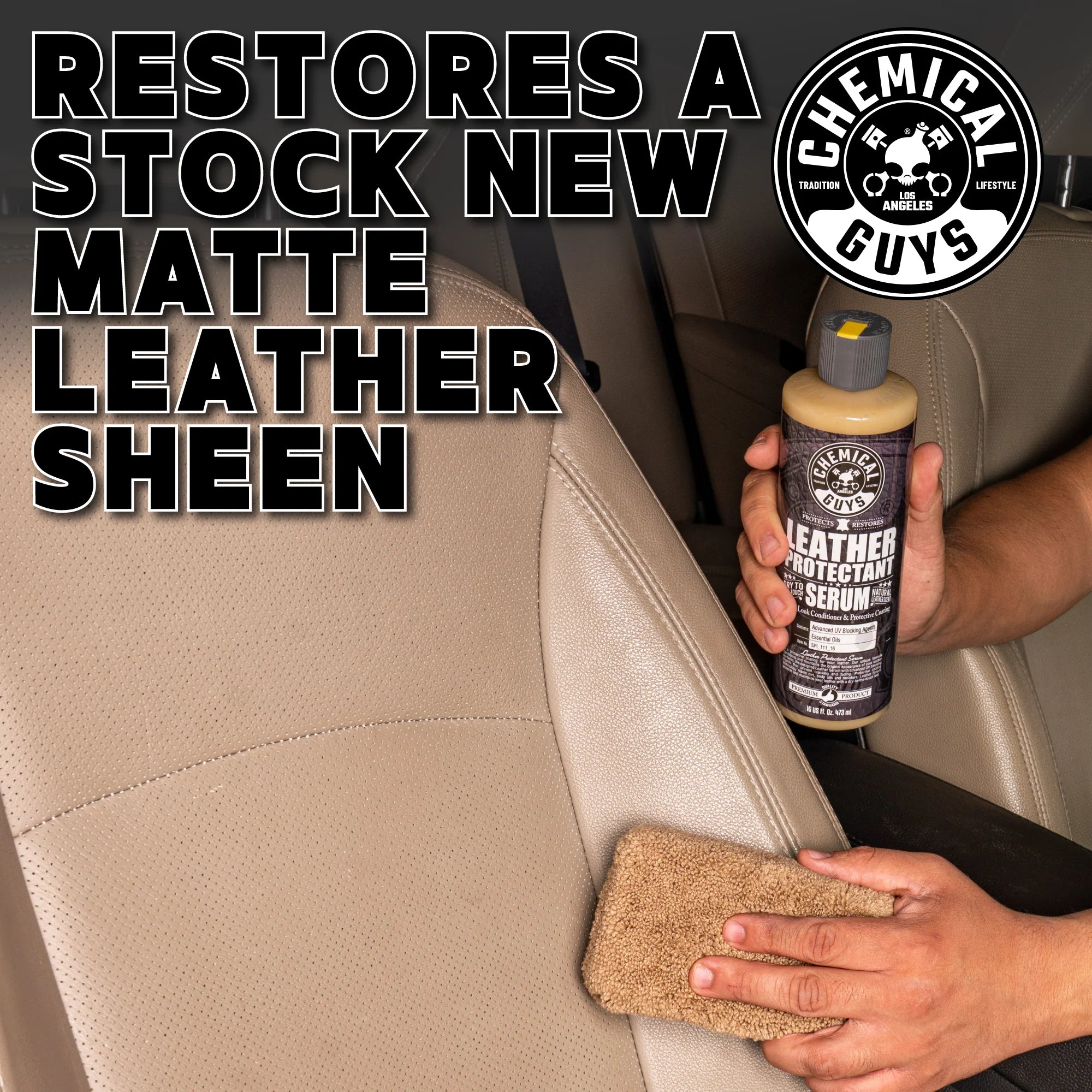 Leather Serum Protectant restores a soft, supple look and feel to leather and helps protect it against fading from harsh UV rays & light stains.