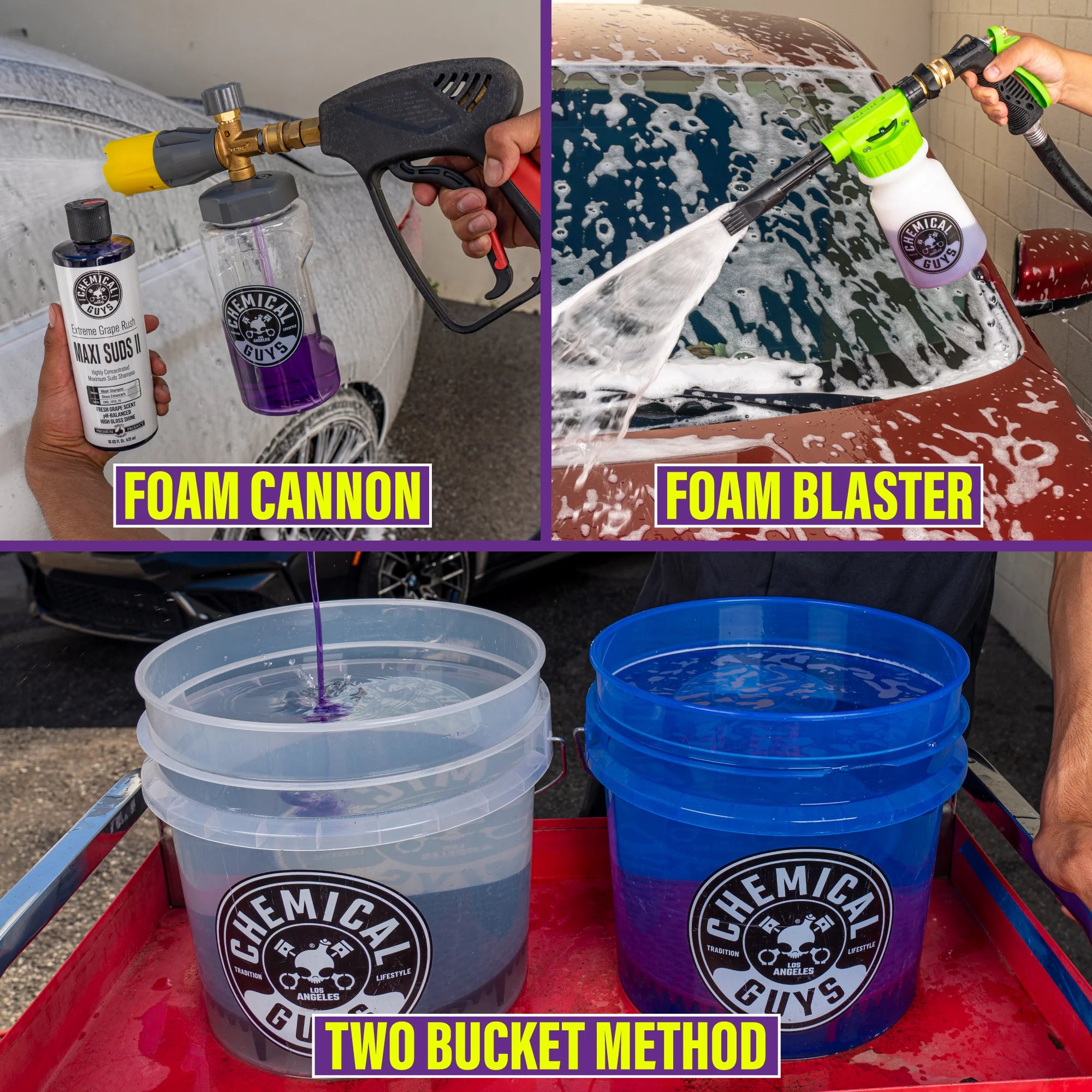 Foam cannon or gun: spray vehicle with thick wash foam to protect the paint against swirls and scratches.