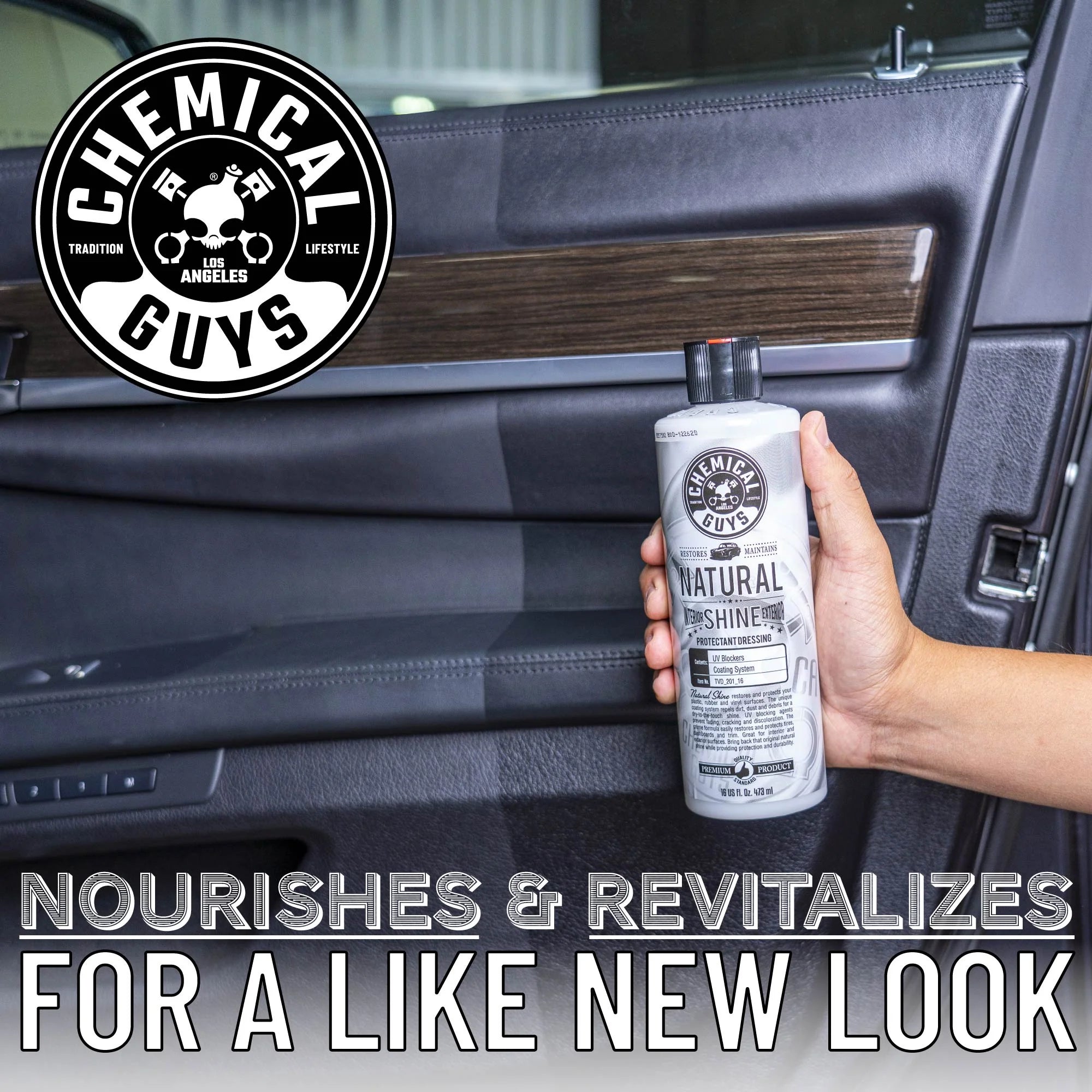 Natural Shine is a premium dressing that uses synthetic polymer coating technology to restore a classic, low-sheen, dry-to-the-touch shine to your plastic, rubber, and vinyl surfaces. Use both inside and outside your car.