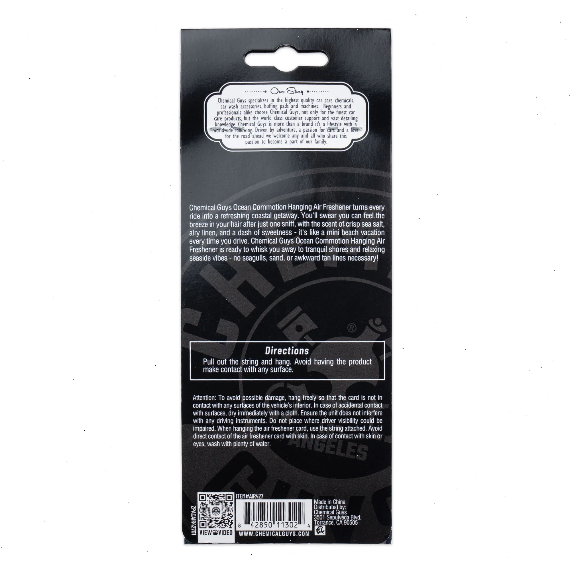 Chemical Guys Ocean Commotion Air Freshener turns every ride into a refreshing coastal getaway with the scent of crisp sea salt, airy linen, and a dash of sweetness – it’s like a mini beach vacation every time you drive.Â
