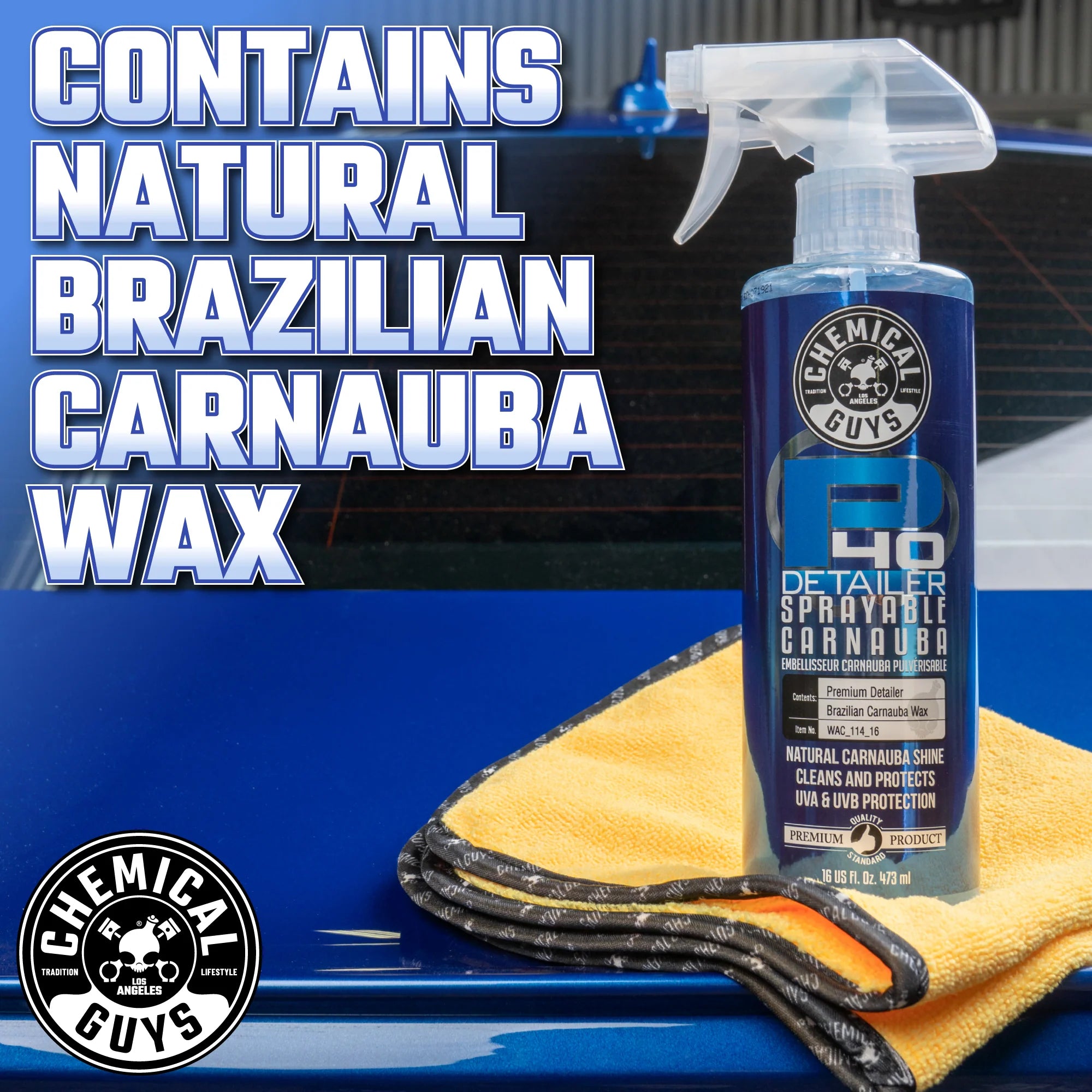P40 is the innovative quick detail spray that’s blended with slick lubricants, streak-free cleaners, and natural carnauba wax for quick wipe downs and superior gloss with durable protection.