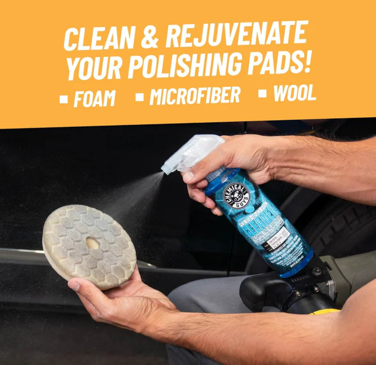 Introducing the Pad Cleaning & Conditioner Kit—your go-to for maintaining polishing pads. Our citrus-powered Polishing Pad Cleaner rejuvenates pads, while the Foam Pad Conditioning Brush restores texture. Chemical Guys Polishing Pad Conditioner reduces friction and heat buildup, ensuring optimal performance and longevity. Ideal for preserving pad quality and achieving flawless detailing results.