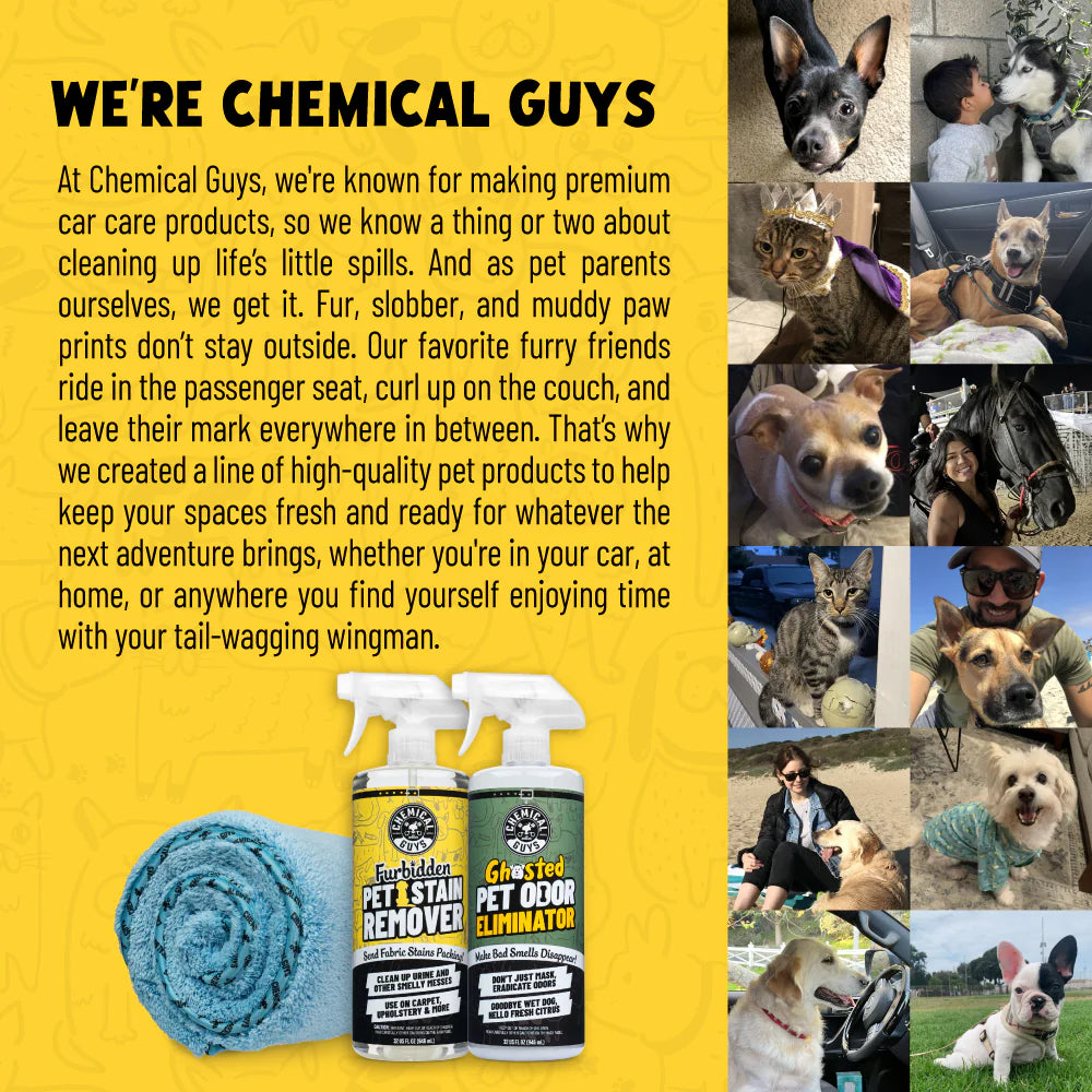 Clean up stubborn pet stains, banish nasty pet odors right at their source, and get your four-legged friend dry as a bone in no time with this set of three premium pet products.
