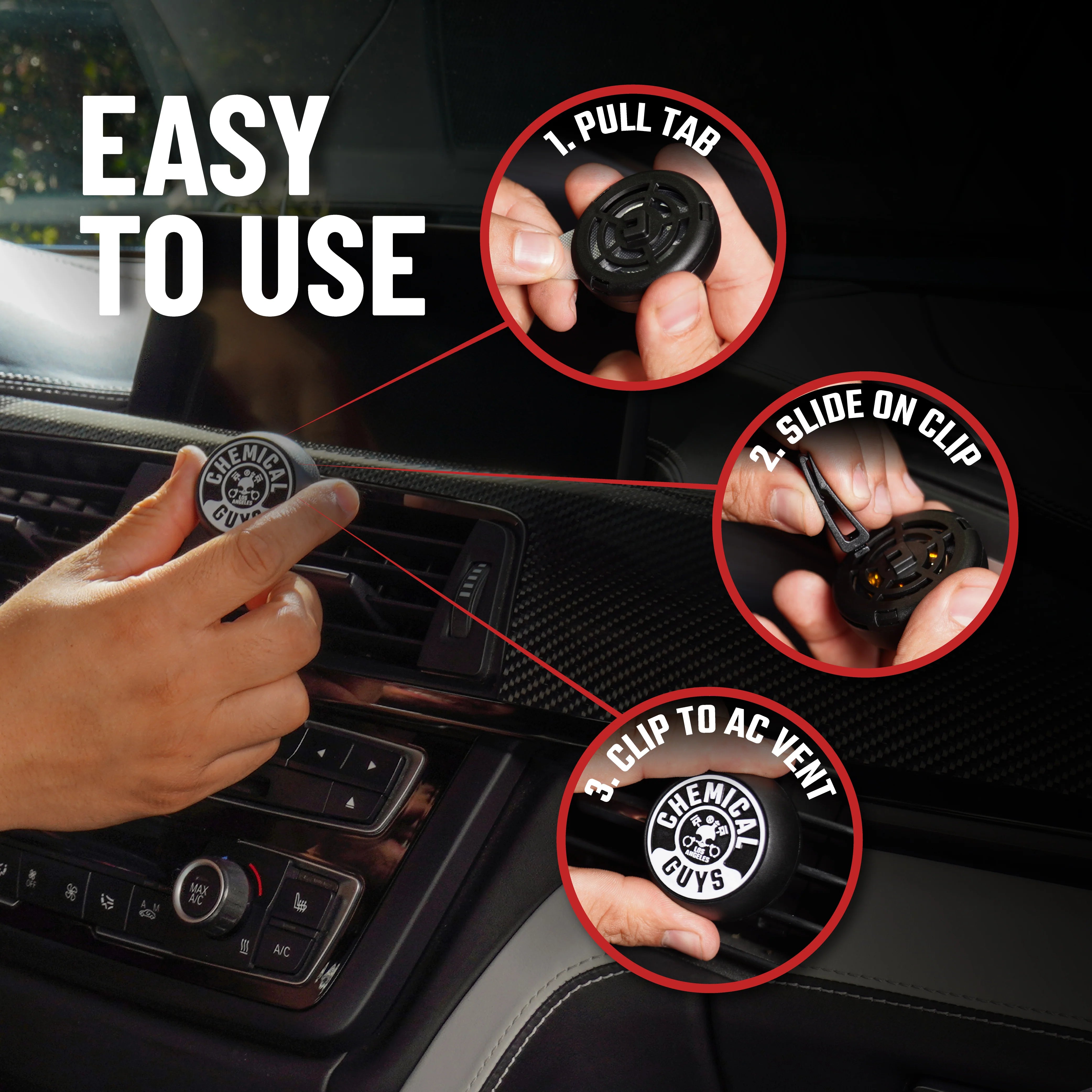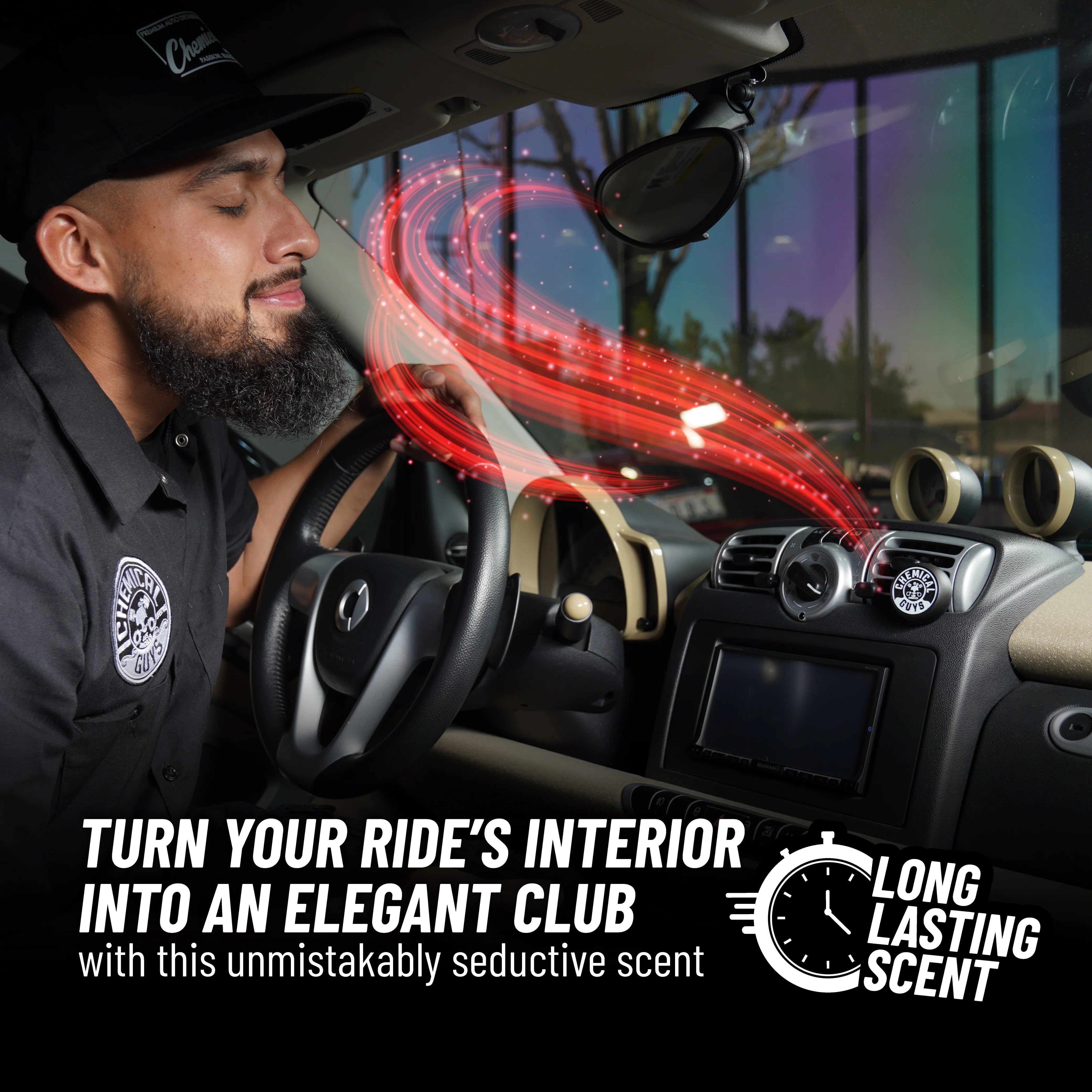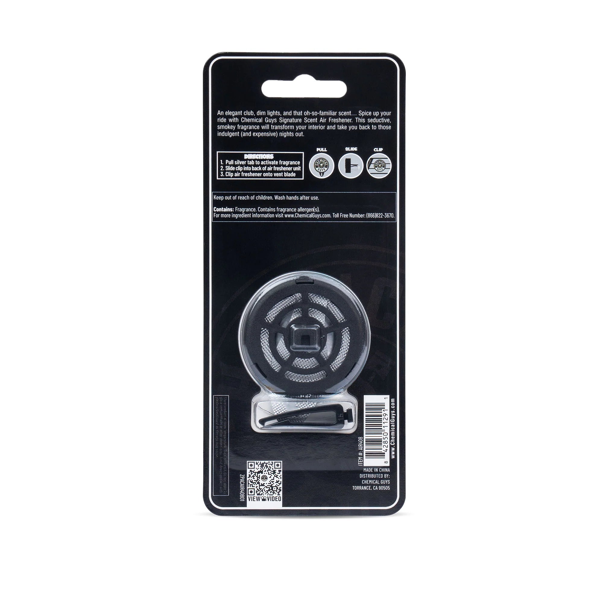 An elegant club, dim lights, and that oh-so-familiar scent…Spice up your ride with Chemical Guys Signature Scent Air Freshener. This seductive, smokey fragrance will transform your interior and take you back to those indulgent (and expensive) nights out.