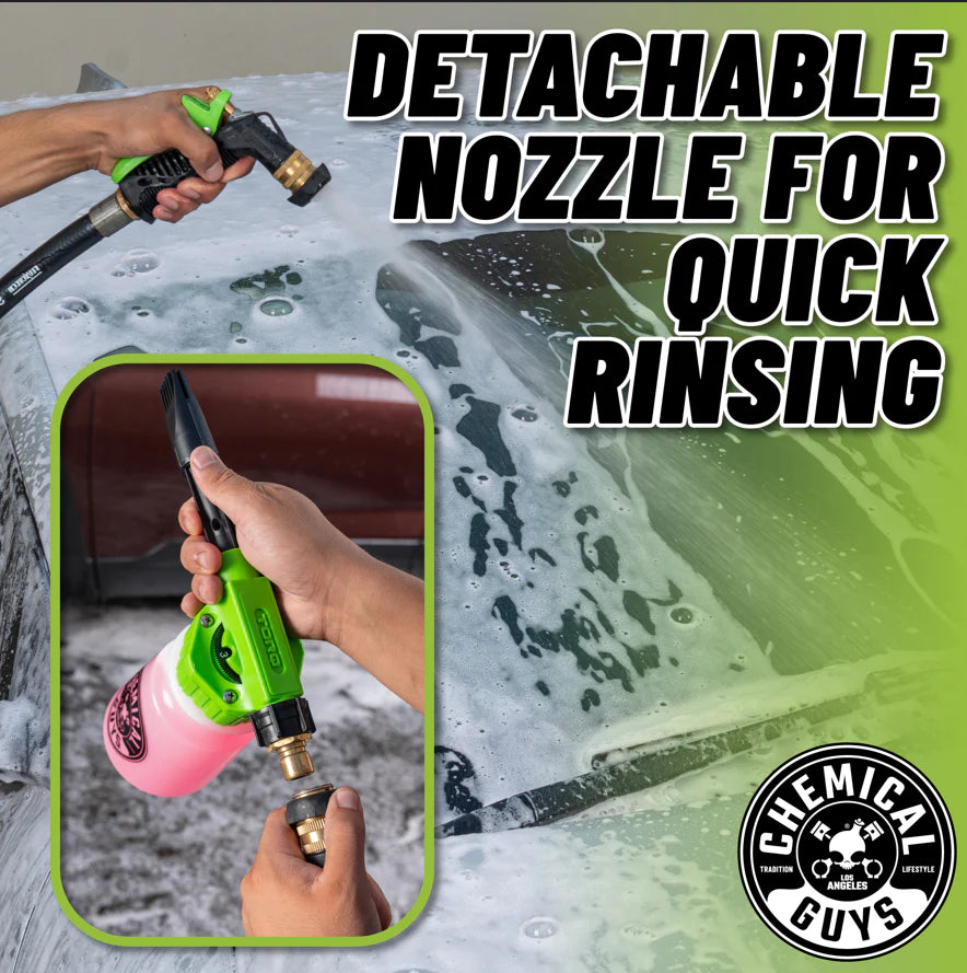 The TORQ Foam Blaster 6 adds variable foam action to your car wash without an expensive pressure washer—simply attach it to your garden hose, turn the dial, and instantly shoot cleansing foam onto your vehicle.