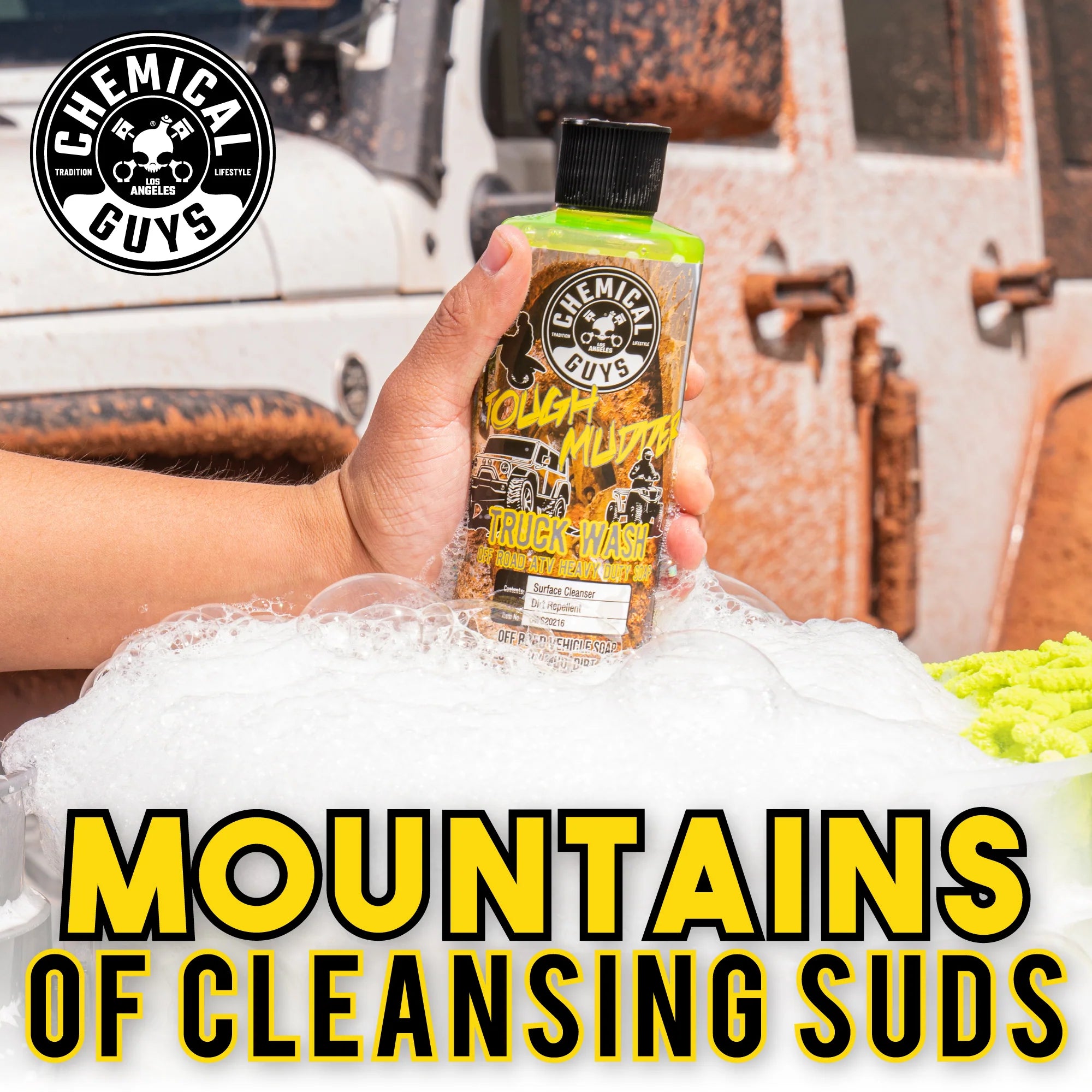 Tough Mudder Truck Wash is a heavy-duty cleaner designed to tackle the toughest mud, grime, and dirt on off-road vehicles. Its powerful formula clings to abrasive debris, lifting it away while preventing scratches and swirls. With easy rinsing and protective additives, Tough Mudder leaves your vehicle's surface slick and ready for the next adventure.
