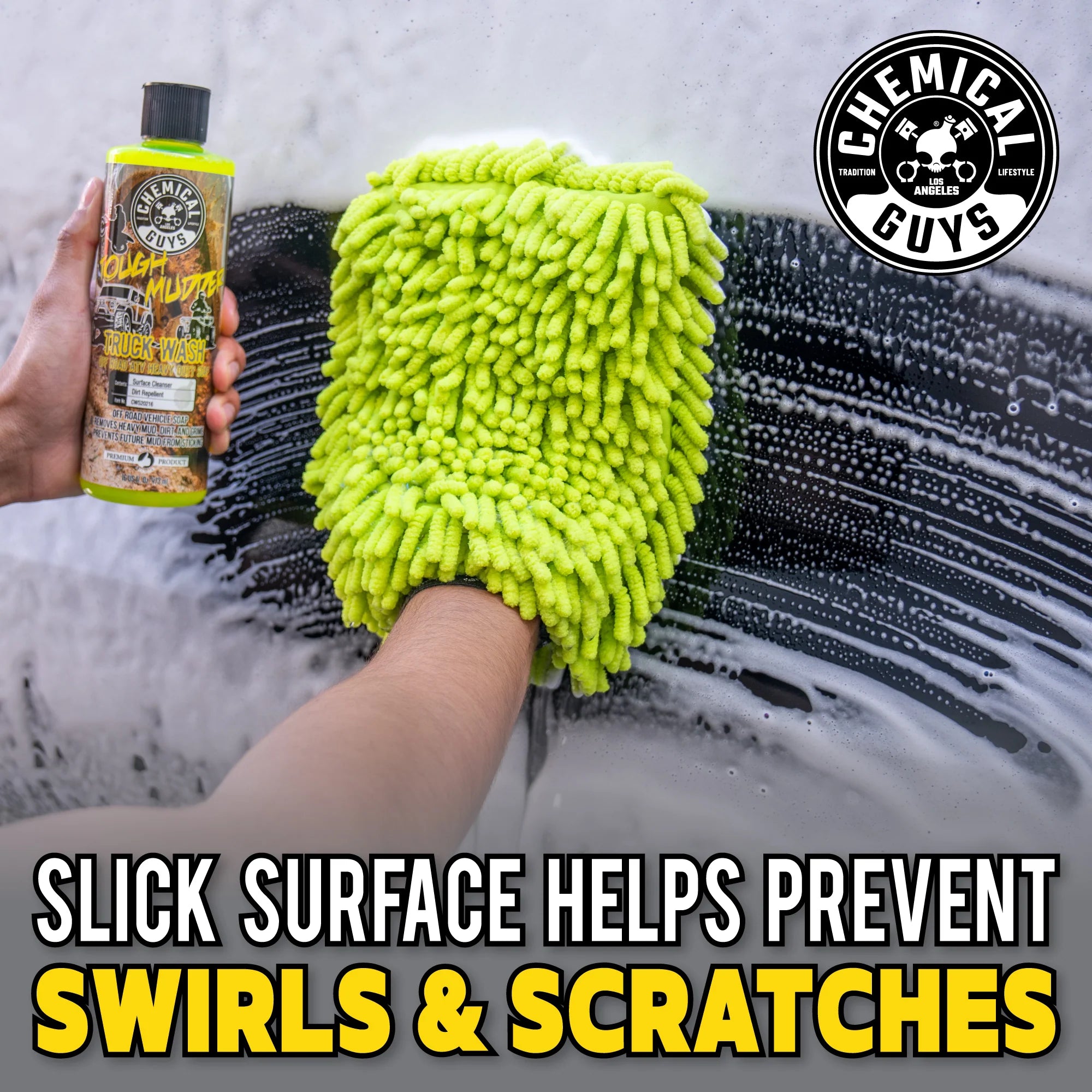 For a High Foam Touchless Wash, add 1 to 3 oz of Tough Mudder to a 32 oz solution tank of foam cannon or gun. Spray vehicle with thick wash foam to protect the paint against swirls and scratches. Wash the surface with a wash mitt, then rinse with clean water and dry with a premium microfiber towel.