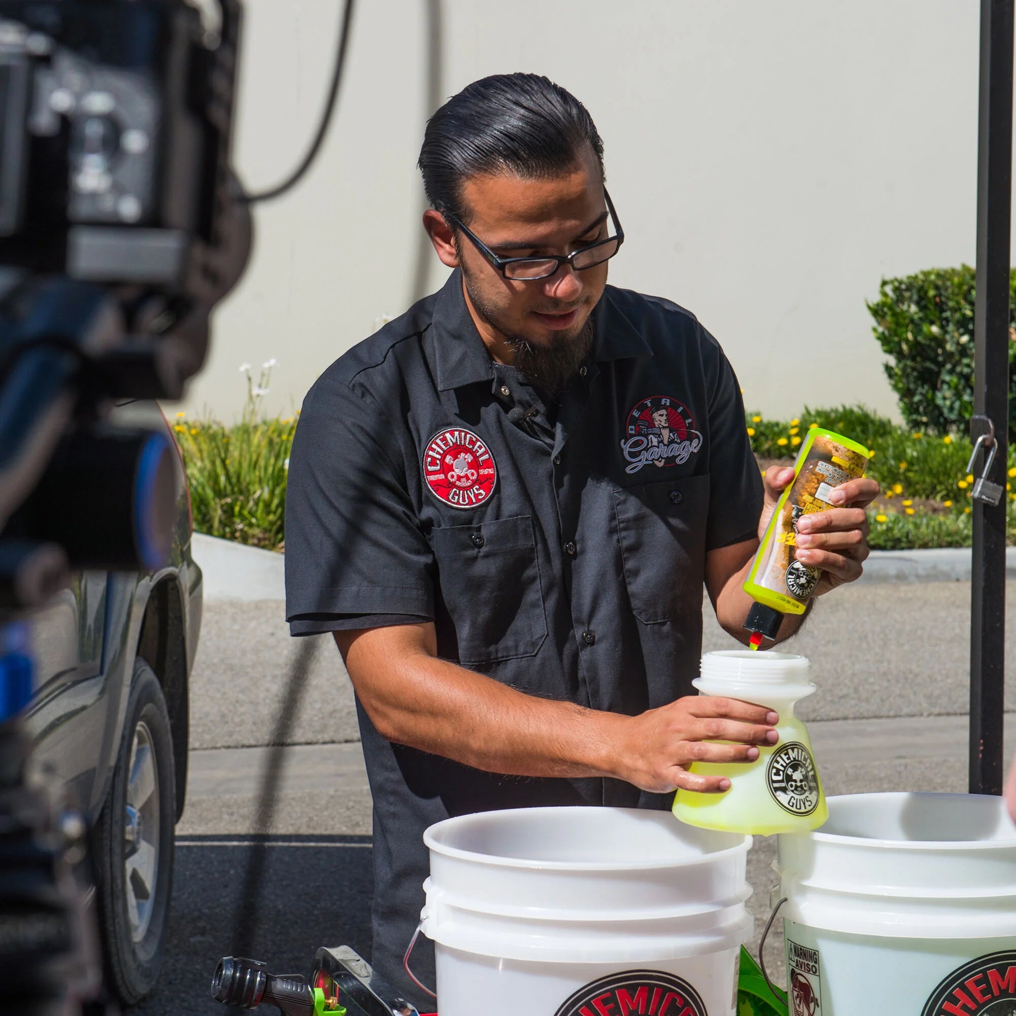 Add 1 to 3 oz to 5-gallon bucket. Wash surface with your car wash mitt and soapy solution. Rinse with clean water and dry with a premium microfiber towel.