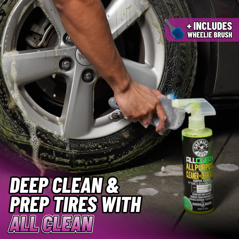 Get ready to make your wheels and tires scream, 'Look at me!' with our Two Face Wheel Wash & Wax Kit. This badass bundle cleans, shines, and protects, leaving a head-turning, high-gloss finish. Packed with top-tier cleaning agents, must-have tools, and our spotlighted item, Two Face—watch it change color when clean—this kit is your secret weapon for wheels and tires that steal the show.
