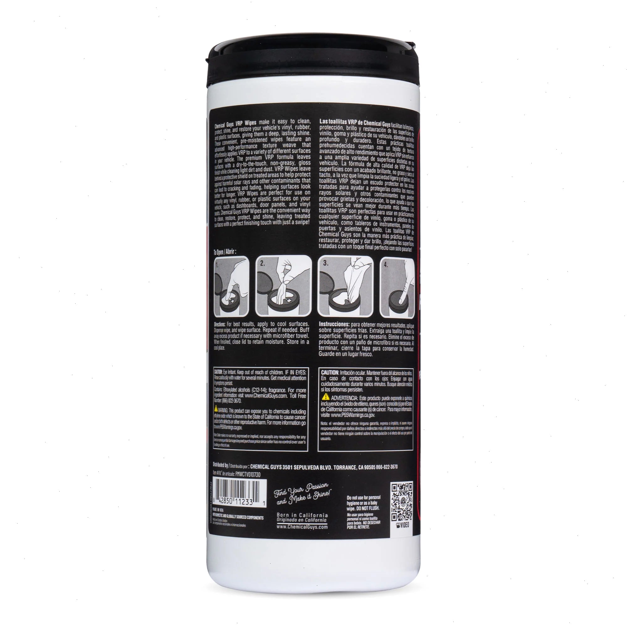 Chemical Guys VRP Trim Protectant Canister Wipes deliver the ultimate all-in-one solution for cleaning, restoring, and protecting your vehicle’s vinyl, rubber, and plastic surfaces. Each extra-large, heavy-duty pre-moistened wipe is infused with the legendary VRP formula to remove light dirt and dust while restoring a deep, rich shine. The advanced textured weave ensures smooth, even coverage, leaving behind a dry-to-the-touch, non-greasy glossy finish that instantly refreshes your interior and exterior trim. Plus, every wipe adds a protective barrier against harmful UV rays, fading, and cracking, helping your surfaces stay cleaner, darker, and more flexible for longer. Perfect for dashboards, door panels, trim, and vinyl seats, VRP Wipes make it easier than ever to achieve a professional detail anywhere, anytime.