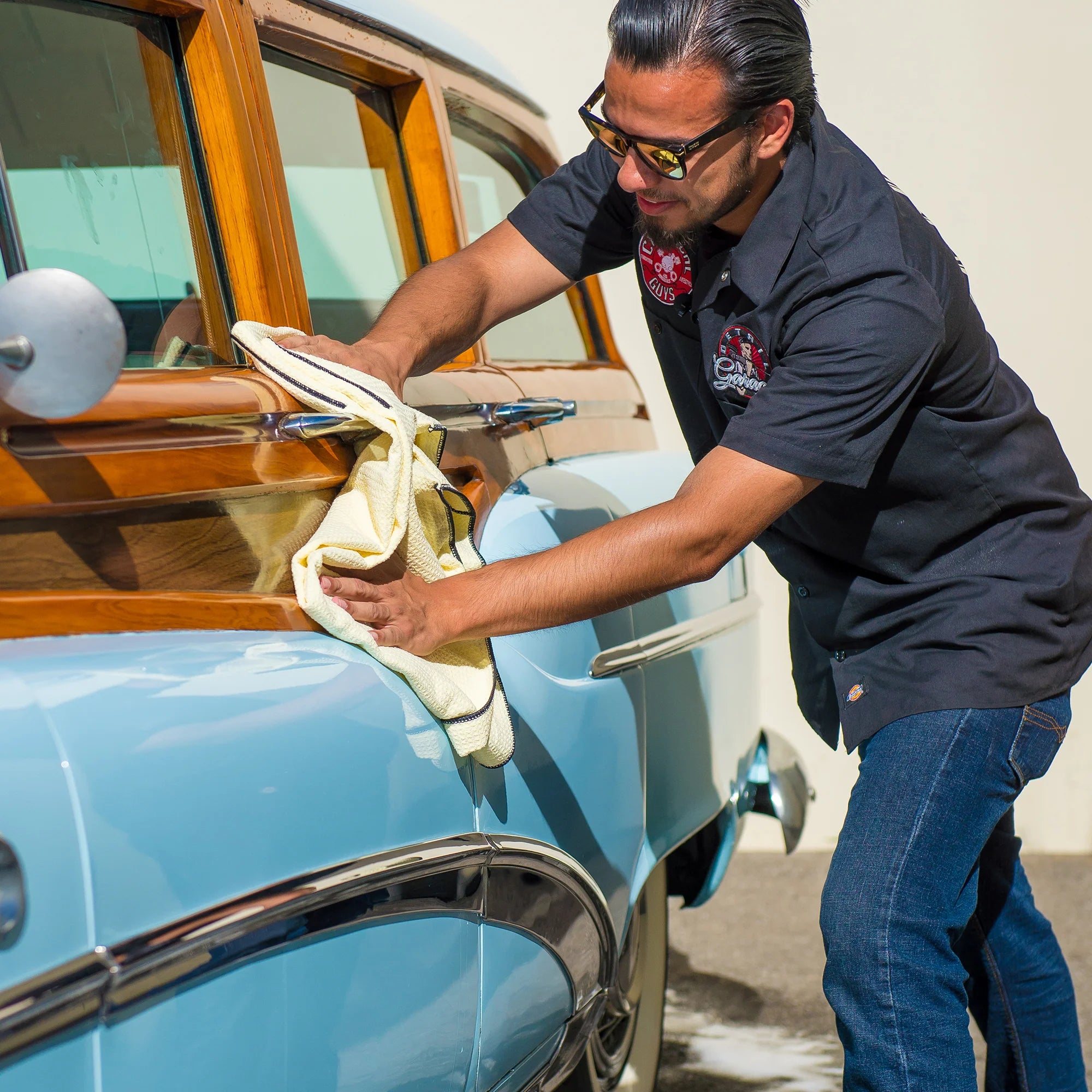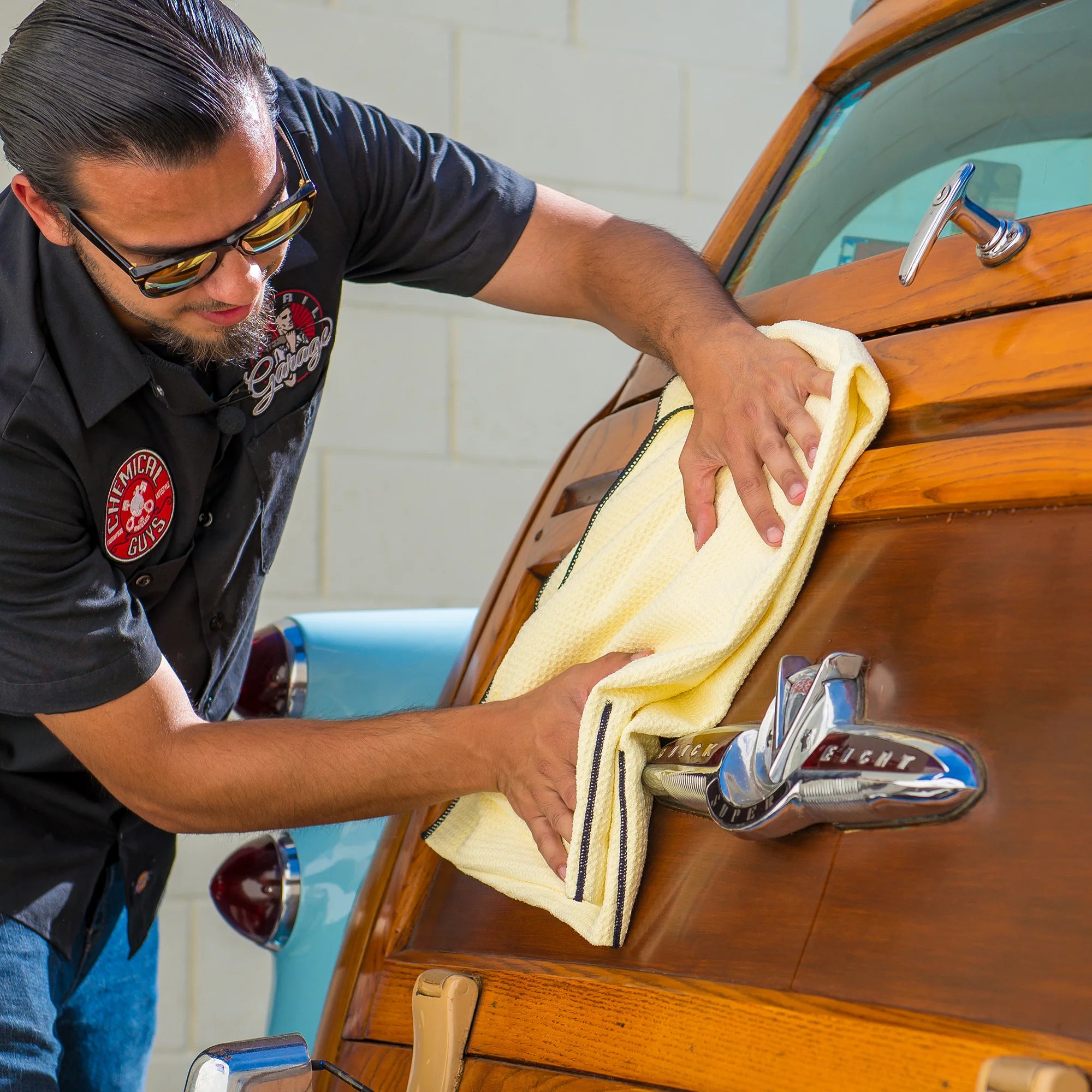 The Waffle Weave SUV Microfiber 35" x 26" Towel is an ultra-soft silk-edged towel made of 70/30 microfiber and unique waffle grooves to trap liquids and dirt the same way waffles trap syrup and butter, quickly drying the surface for perfect streak-free on any size SUV.